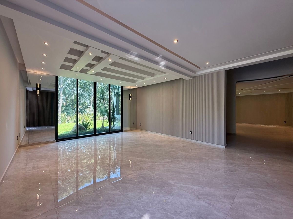 Hermosa casa totalmente remodelada con acabados de lujo y espacios amplios, ubicada dentro de Puerta de Hierro, que en planta baja ofrece amplio jardín con vista a una cañada, recibidor, oficina, recámara con baño y vestidor, cocina integral amplia, comedor, sala, terraza amplia, bar, baños para visitas, dos cuartos de servicio con baño y cochera para 3 autos techados más 2 o 3 sin techar; en planta alta cuenta con tres recámaras con baño y vestidor, destacando la recámara principal muy amplia con estancia y balcón, ideal para disfrutar confort, privacidad y una excelente calidad de vida.