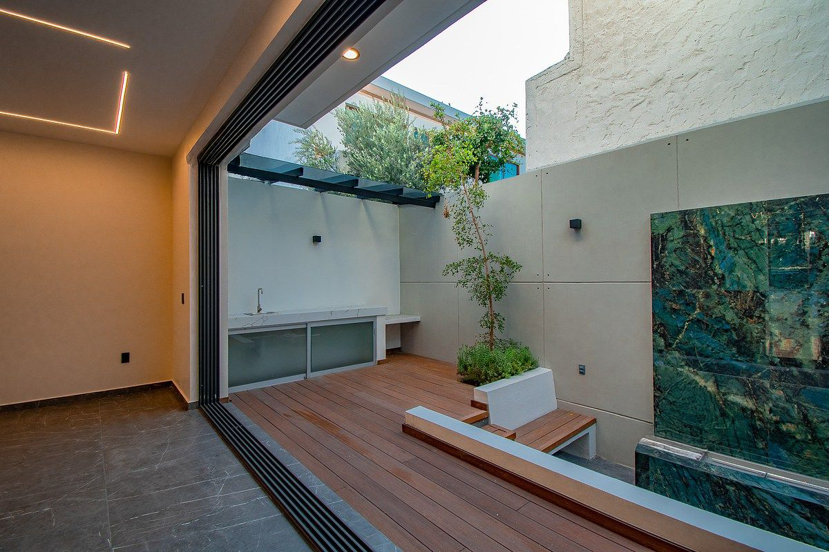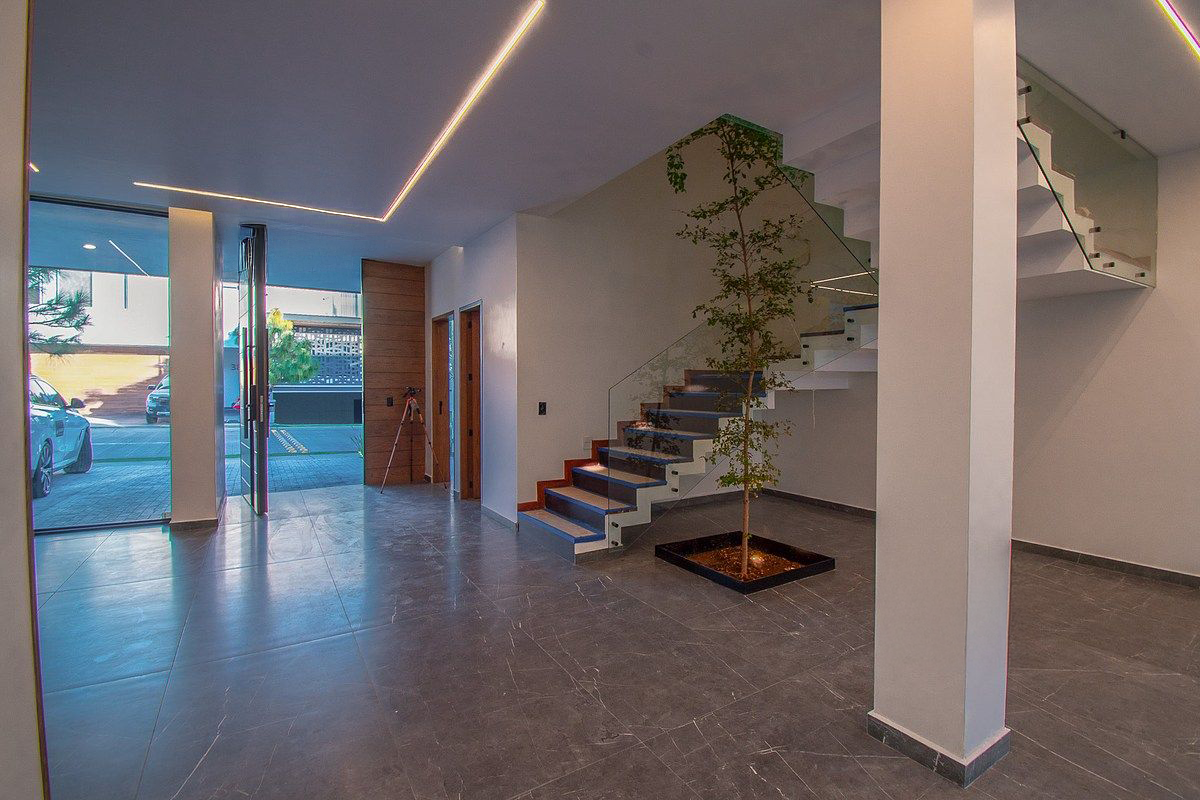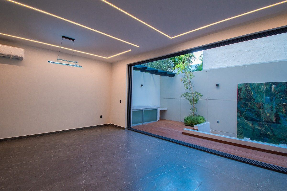 Casa nueva de lujo en Colinas Virreyes, frente a Puerta Las Lomas y a solo 7 minutos de Andares, desarrollada sobre un terreno de 261 m² y 410 m² de construcción distribuidos en tres niveles; en planta baja ofrece amplio recibidor, sala–comedor, cocina integral de lujo con isla, estudio o cuarta recámara con baño completo, patio con fogatero, área de lavado y cuarto de servicio, mientras que en la segunda planta cuenta con tres recámaras con vestidor y baño completo, además de área de TV, y en el tercer nivel integra un espectacular roof garden con salón de TV o juegos con baño completo y terrazas equipadas con tarja y pérgola para eventos. El coto dispone de alberca, terraza para eventos, gimnasio y seguridad 24/7, ideal para quienes buscan lujo, ubicación y estilo de vida premium.