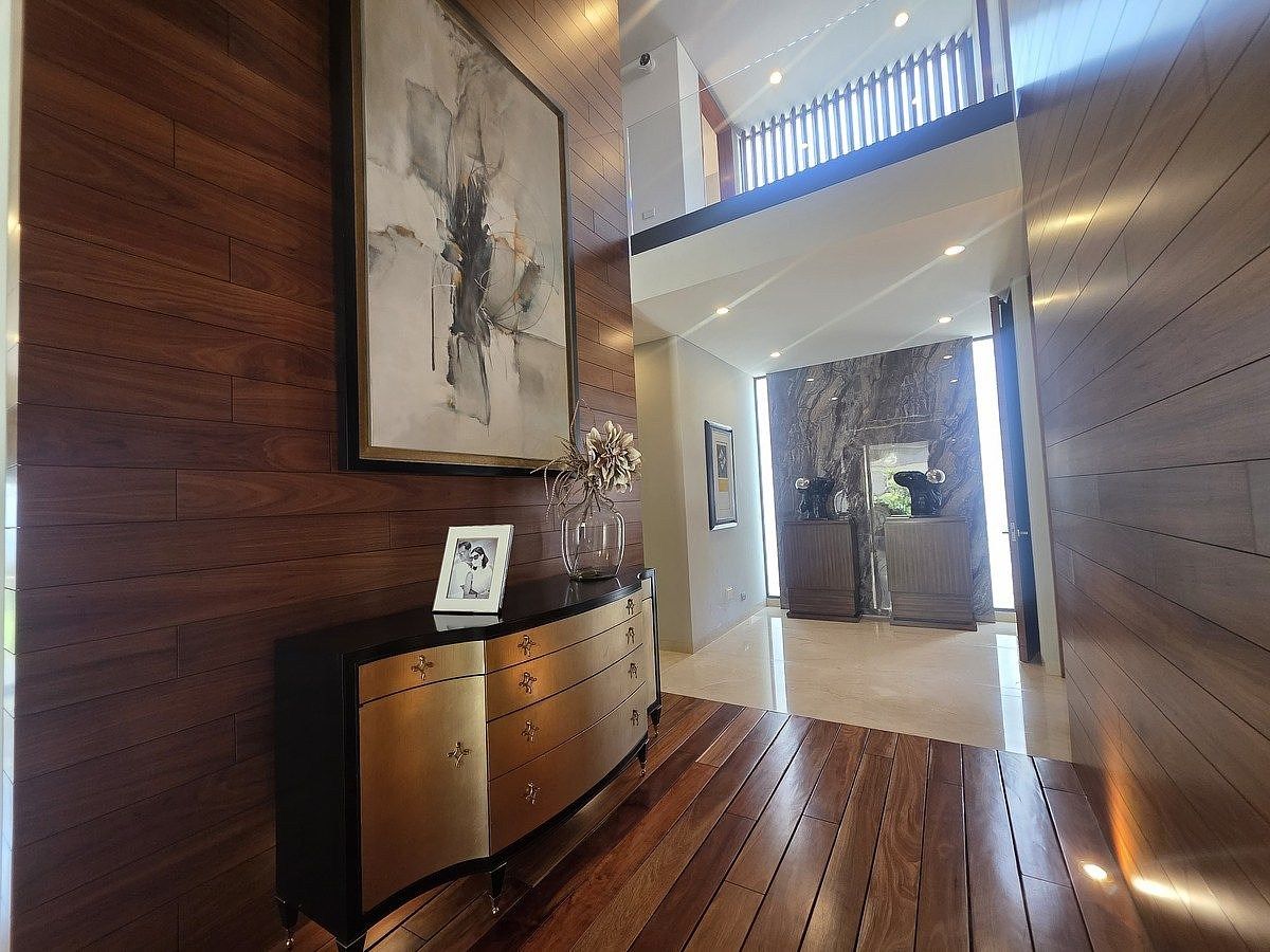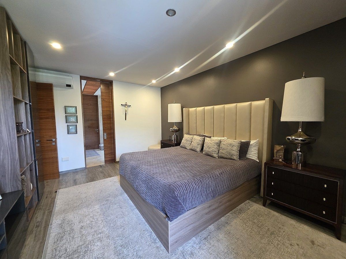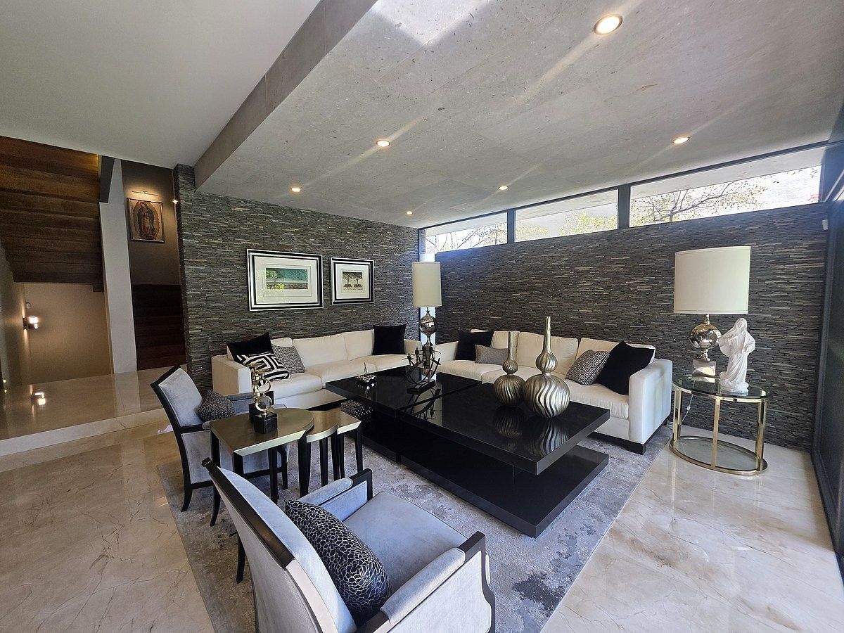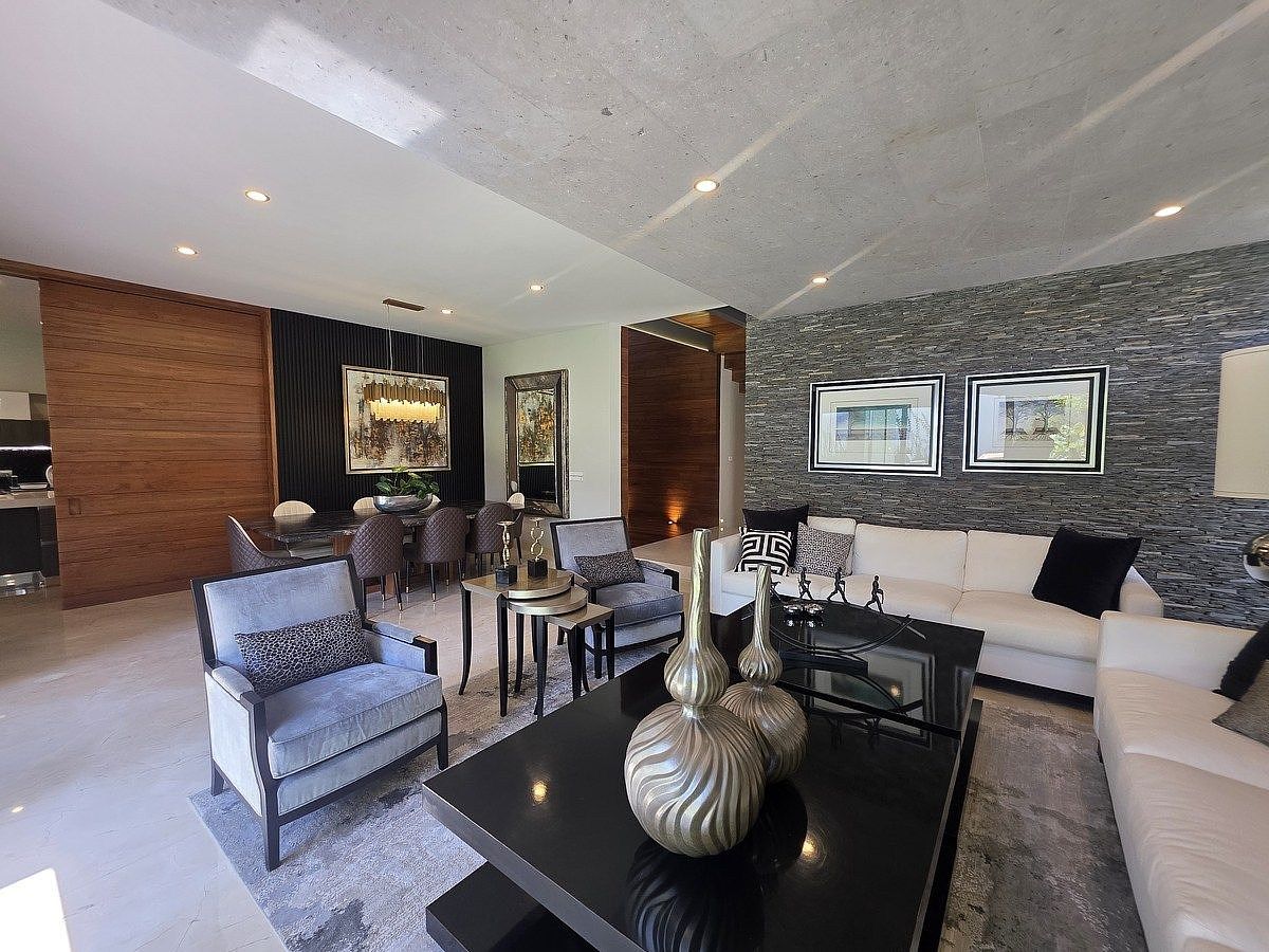 Hermosa residencia en venta distribuida en tres niveles, diseñada para ofrecer máximo confort, funcionalidad y lujo, con espacios amplios y perfectamente integrados; en planta baja destaca su ingreso a doble altura, estudio o recámara con baño completo, elegante cocina integral con opción abierta o cerrada, amplia sala y comedor conectados a una espectacular terraza con alberca climatizada, asador y sistema de sonido, además de jardín y despensa; en el segundo nivel cuenta con recámara principal con gran vestidor y baño, tres recámaras secundarias con baño y vestidor, sala de TV y área de lavandería, mientras que en sótano ofrece cochera para 3 a 6 autos, cuarto de servicio, bodegas, dos baños completos y espacio versátil para estudio o taller, complementándose con elevador en los tres niveles, paneles solares y sistema de filtrado de agua, ideal para quienes buscan una residencia de alto nivel lista para disfrutarse.