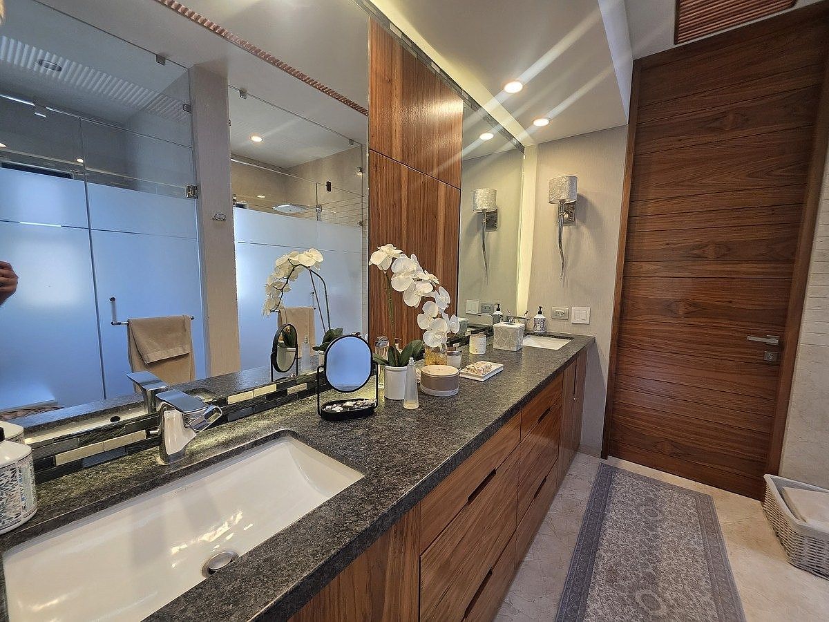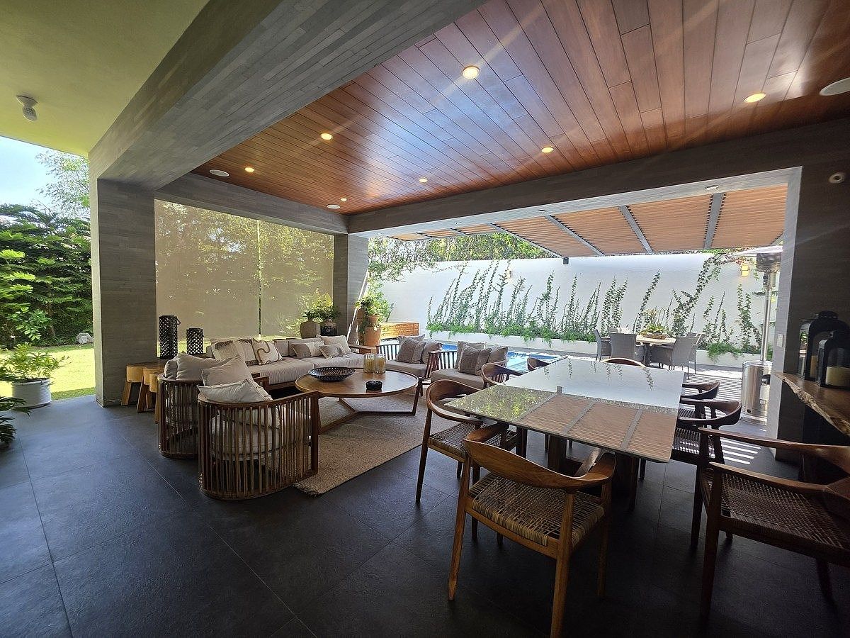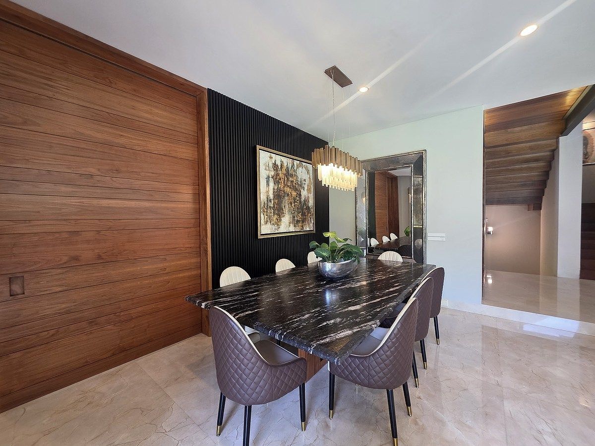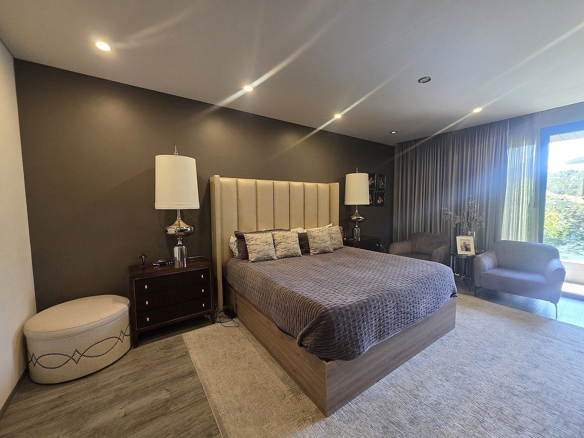 Hermosa residencia en venta distribuida en tres niveles, diseñada para ofrecer máximo confort, funcionalidad y lujo, con espacios amplios y perfectamente integrados; en planta baja destaca su ingreso a doble altura, estudio o recámara con baño completo, elegante cocina integral con opción abierta o cerrada, amplia sala y comedor conectados a una espectacular terraza con alberca climatizada, asador y sistema de sonido, además de jardín y despensa; en el segundo nivel cuenta con recámara principal con gran vestidor y baño, tres recámaras secundarias con baño y vestidor, sala de TV y área de lavandería, mientras que en sótano ofrece cochera para 3 a 6 autos, cuarto de servicio, bodegas, dos baños completos y espacio versátil para estudio o taller, complementándose con elevador en los tres niveles, paneles solares y sistema de filtrado de agua, ideal para quienes buscan una residencia de alto nivel lista para disfrutarse.