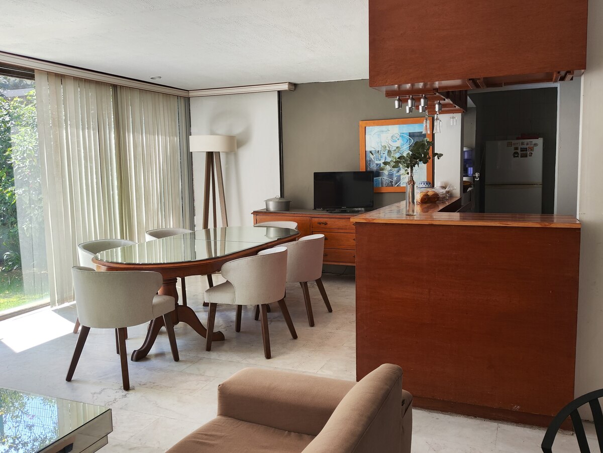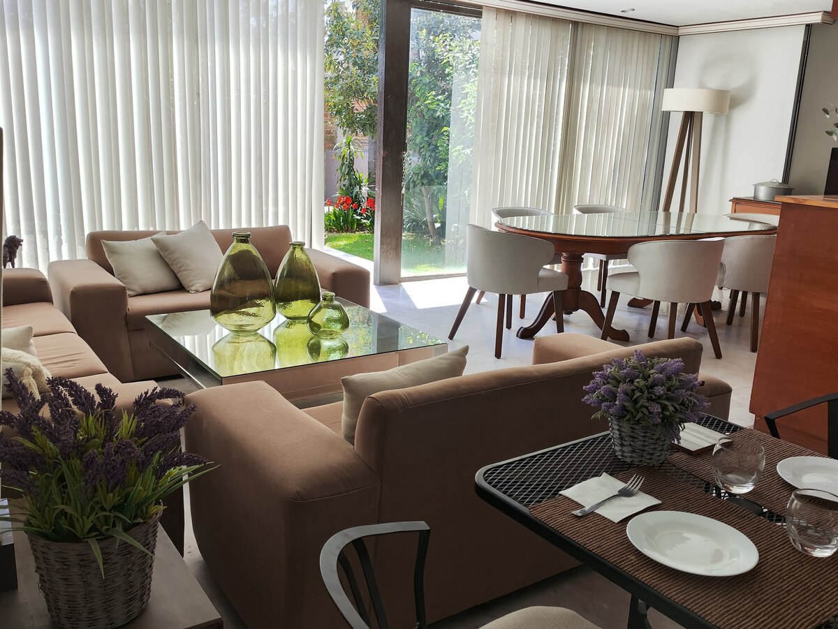 Disfruta de la comodidad, seguridad y amplitud de esta hermosa residencia ubicada en el Condominio Bugambilias, con encantadoras vistas al bosque. Construida sobre un terreno de 300 m² y con 360 m² de construcción, cuenta con 4 amplias recámaras, cada una con baño propio (la principal con vestidor), además de medio baño para visitas. La sala y el comedor ofrecen gran iluminación natural y vista al jardín, mientras que la cocina integral también se conecta visualmente con el área verde. Incluye family room o estudio, jardín privado ideal para reuniones, área de lavado, cuarto de servicio con baño completo, bodega y estacionamiento para 2 autos. El condominio brinda seguridad 24/7, amplias áreas verdes y una ubicación privilegiada cerca de centros comerciales, colegios y principales vías de acceso.