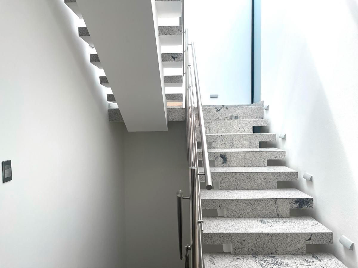 Esta impresionante propiedad de 4 niveles combina generosos espacios, luminosidad excepcional y materiales de primera calidad en una distribución funcional y moderna. La residencia cuenta con 3 recámaras, cada una con vestidor y carpintería de nogal y encino americano, 4.5 baños, amplio salón-comedor, recibidor, cocina abierta con encimeras de cuarzo, pisos de mármol, cuarto de servicio, jardín, estacionamiento para 4 autos (2 techados), bodega y un espectacular rooftop con vistas panorámicas. Ubicada en un fraccionamiento con seguridad 24/7 y acceso controlado, ofrece amenidades como casa club con alberca, zona de juegos infantiles, sala de eventos y áreas verdes. Su estratégica ubicación cerca del Estadio Akron, Escuela Franco Mexicano, Universidad Cuauhtémoc y a solo 5 minutos de Periférico garantiza conectividad perfecta, ideal para familias que buscan espacio, calidad y seguridad en un entorno privilegiado.