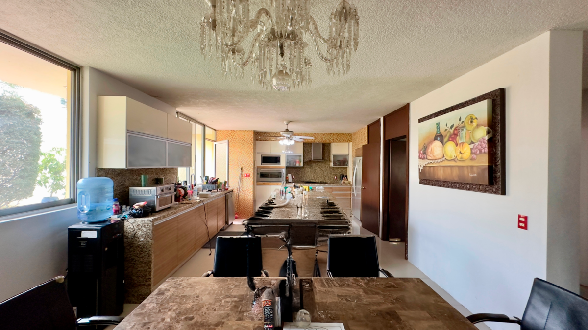 Accede a esta impresionante residencia que te da la bienvenida con un recibidor, medio baño de visitas y un práctico closet. El estudio es perfecto para trabajo o entretenimiento. En la planta baja, descubrirás una amplia cocina con área de desayunador, un generoso comedor y una sala con acceso a una terraza que se extiende hacia el jardín y la refrescante alberca. También incluye un cuarto de juegos con salida al jardín y una amplia alacena para mayor comodidad. En la planta alta, se encuentran las cinco recámaras privadas, destacando la recámara principal con balcón, vestidor y baño completo. Las otras habitaciones ofrecen closets, baños completos con tina, balcón y vistas al jardín. Además, cuenta con área de lavado, patio de servicio y cuarto de servicio con baño completo. Con estacionamiento techado para cuatro autos, esta casa libre de gravamen está lista para ser escriturada, brindando la oportunidad de vivir con estilo en una de las zonas más exclusivas de Guadalajara.