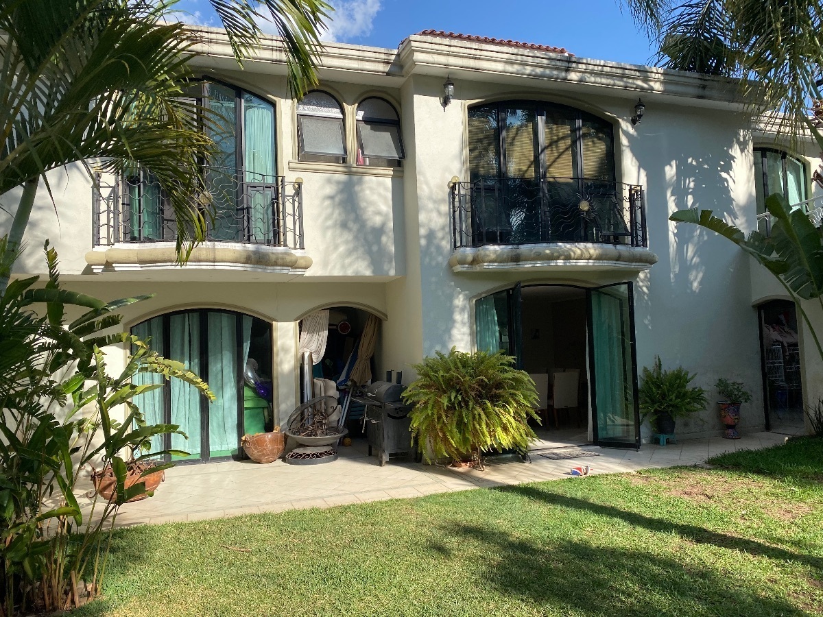 Residencia en venta de dos niveles en Bugambilias, Primera Sección, ubicada antes de la plaza comercial y la iglesia, en la zona sur de Guadalajara y no dentro de coto. Cuenta con amplio jardín y alberca. En planta baja ofrece recibidor, medio baño, sala y comedor, estudio, oficina, cocina integral con comedor auxiliar, cuarto de lavado y cuarto de servicio con baño; además de jardín, palapa, terraza y alberca con cascada. En planta alta dispone de 4 recámaras, 3 baños completos, recámara principal con vestidor, estudio, biblioteca y balcón. Cochera para 3 autos. Ideal para quienes buscan amplitud, comodidad y una excelente ubicación.