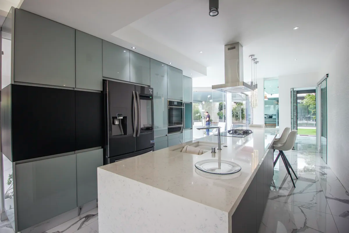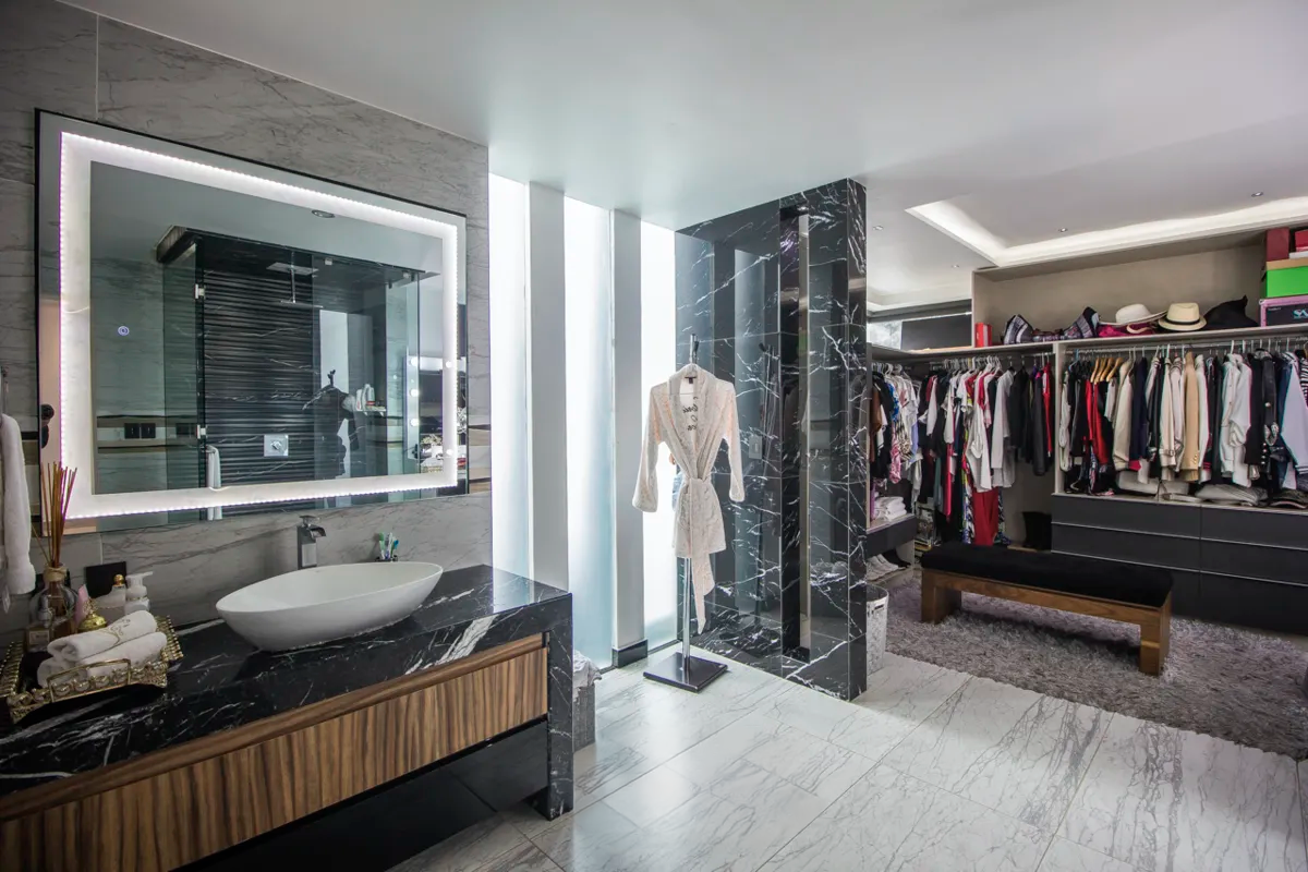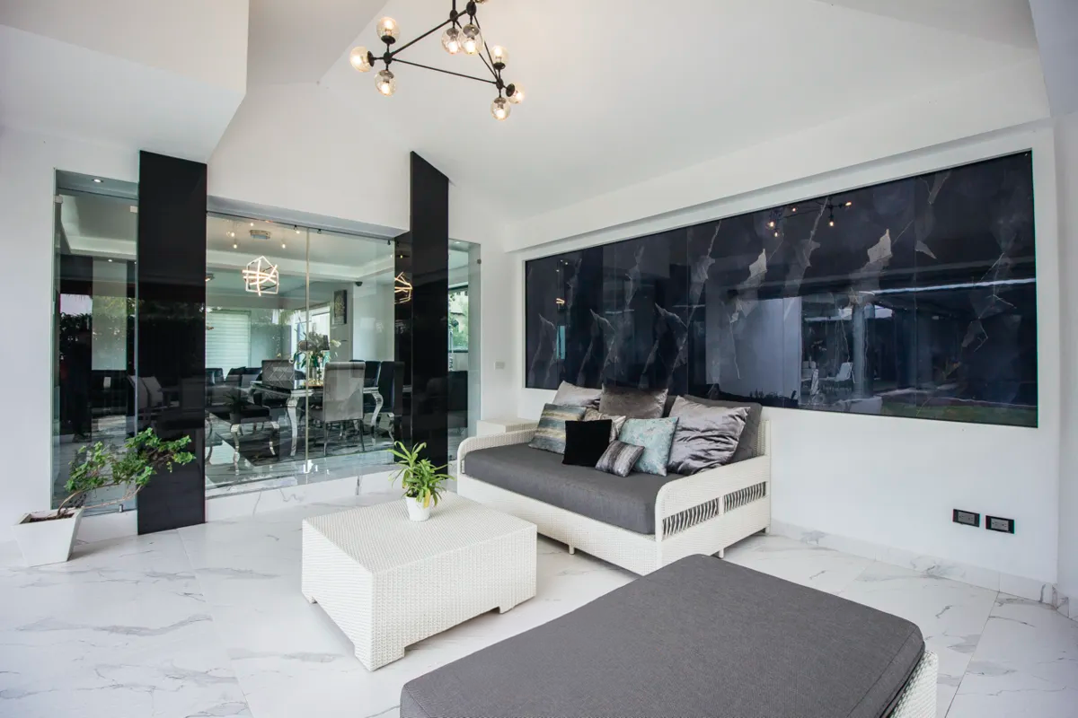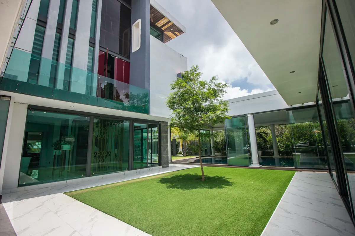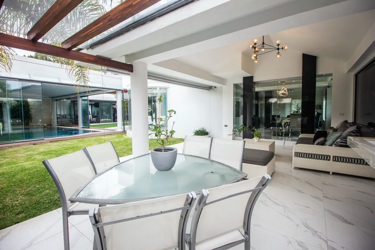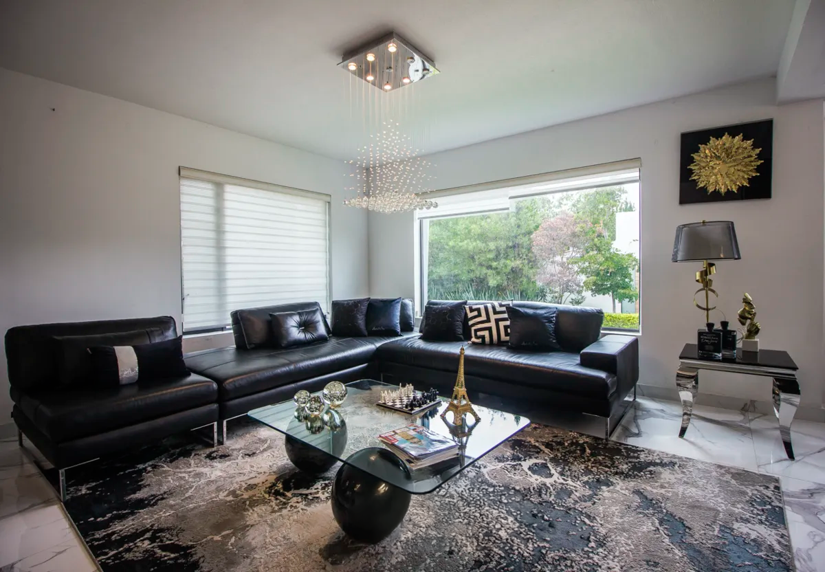 Espectacular residencia en coto exclusivo en la parte panorámica de Bugambilias, completamente remodelada hace un par de años. Esta propiedad de lujo cuenta con elevador, paneles solares, y un sistema de agua purificada que abastece toda la casa, además de una cisterna de 15,000 litros. Los espacios destacan por su doble altura y su iluminación natural. En la planta baja, encontrarás una alberca de gran tamaño, jardín, gimnasio, una cocina equipada con acabados de granito, sala y comedor de doble altura, y un estudio con baño de visitas. La cochera tiene capacidad para 6 automóviles. En el primer piso, hay 3 amplias recámaras, cada una con su baño y vestidor. El último piso alberga un family room o sala de juegos. *Precio y disponibilidad sujeto a cambios sin previo aviso*