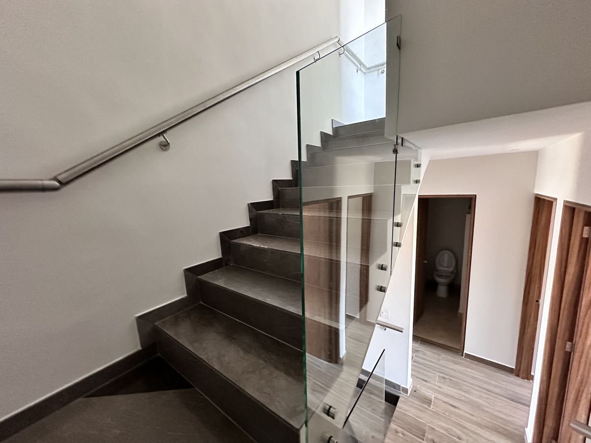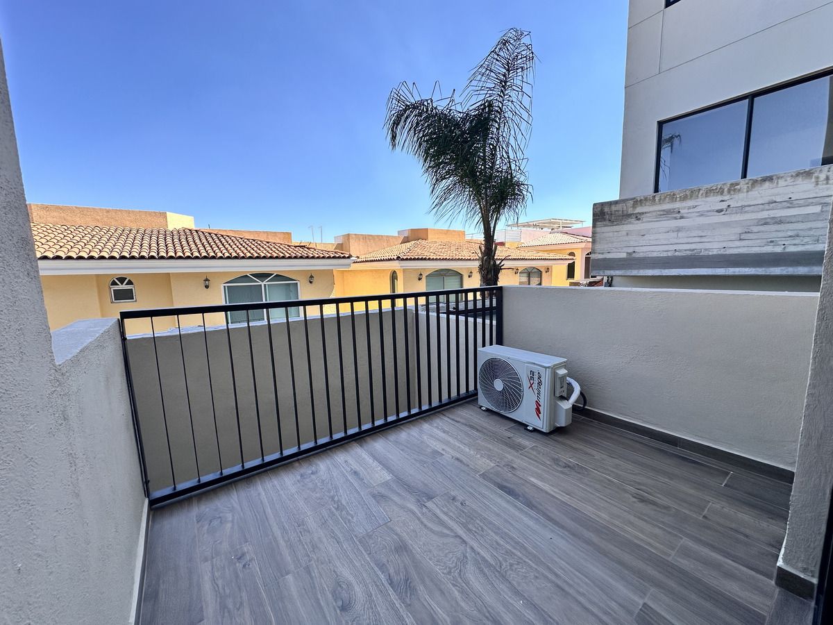 Hermosa casa completamente nueva en venta dentro del exclusivo condominio Andador Peret, conformado por solo 6 casas y un edificio de departamentos, con alberca climatizada, terraza con baños para invitados, área de juegos, lobby con espacio de coworking y cochera subterránea para 2 autos con bodega. La casa cuenta en planta baja con cocina integral con cubierta de granito, estufa de 6 quemadores, campana, closet de blancos, medio baño, sala, comedor, recámara con baño completo y clóset, además de patio con pasto sintético. En el primer piso se encuentran 3 recámaras con aire acondicionado, la principal con vestidor y baño completo, las secundarias con clóset, baño compartido y una de ellas con balcón. En segundo piso cuenta con family room, baño completo, amplia terraza con pérgola, área de lavado y espacio para clóset o bodega. Escaleras de granito con barandal de cristal.