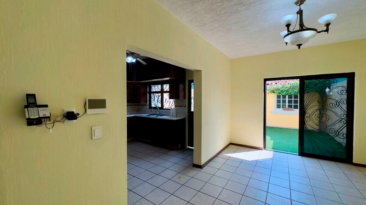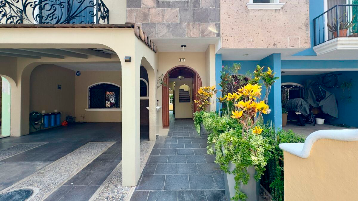 Hermosa casa en venta en Ciudad Granja, dentro del exclusivo Condominio Las Palmas. La propiedad cuenta en planta baja con elegante recibidor, medio baño para visitas, sala y comedor con excelente iluminación, cocina integral con amplio espacio de almacenamiento, área de lavado, jardín con pasto artificial y estudio independiente con baño completo, ideal como oficina o cuarta recámara. En la planta alta se encuentra un estar de TV, recámara principal con baño completo, vestidor y balcón, además de dos recámaras secundarias con clóset que comparten un baño completo. Ofrece también portero eléctrico en el acceso al condominio, dos estacionamientos techados, filtros de agua en toda la casa y ventiladores en todas las recámaras. Excelente oportunidad para vivir en una ubicación privilegiada, cerca de todos los servicios.