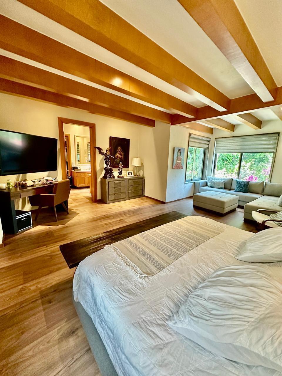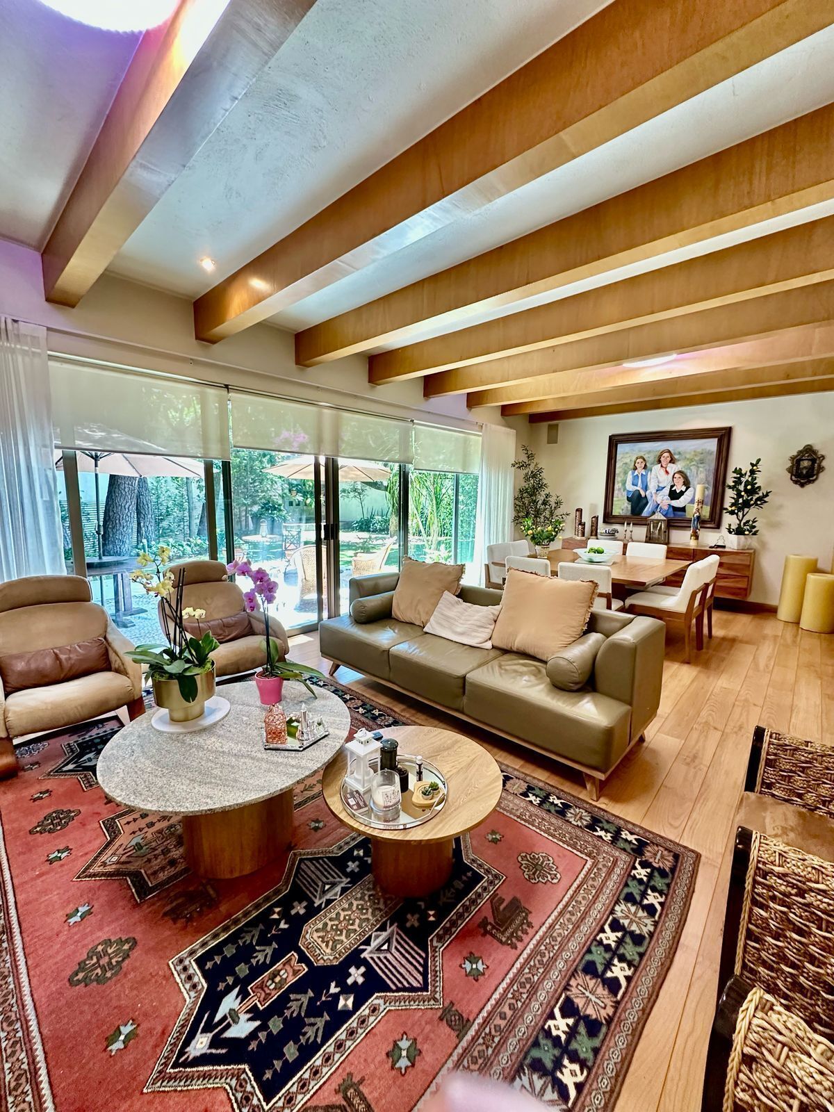 Esta excepcional propiedad en Colinas de San Javier ofrece un concepto único al integrar dos casas independientes en un mismo terreno, perfecto para familias extensas o como casa principal con residencia para invitados. La casa grande despliega en su planta baja una hermosa entrada con amplia sala-comedor, medio baño, cocina moderna equipada con bar, estudio/oficina, terraza y jardín, más cochera para 4+ autos; su primer piso alberga un estar de TV, recámara principal con vestidor y baño, y recámara secundaria con vestidor y baño; mientras el segundo piso cuenta con otra recámara secundaria con vestidor, baño y cuarto de servicio. La casa mediana, estratégicamente ubicada para mayor privacidad, incluye en planta baja cochera para 4 autos, cuarto de servicio, estudio, medio baño, sala-comedor, terraza y jardín; su primer piso con recámara principal con vestidor y baño, y estar de TV; y segundo piso con recámara secundaria con vestidor y baño. Con terminados de lujo