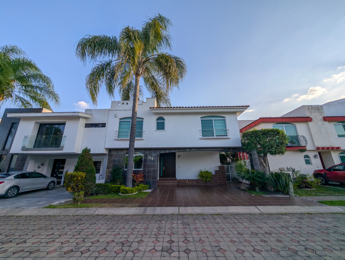 Hermosa casa en venta en Jardín Real, una de las zonas más exclusivas de Zapopan. Con 228 m² de terreno y 282 m² de construcción, ofrece espacios amplios y funcionales distribuidos en dos niveles. En planta baja cuenta con sala y comedor de doble altura, cocina integral equipada, recámara con baño completo, terraza con barra y asador, amplio jardín y cochera. En planta alta tiene tres recámaras con baño y vestidor, una con tina, y área de TV. Ubicada en el Coto 3 – Jardín de Cibeles, con seguridad 24/7, áreas verdes y juegos infantiles. Cercana a Tec de Monterrey, Real Center, Andares y Hospital Real San José, ideal para familias que buscan confort, seguridad y ubicación privilegiada.