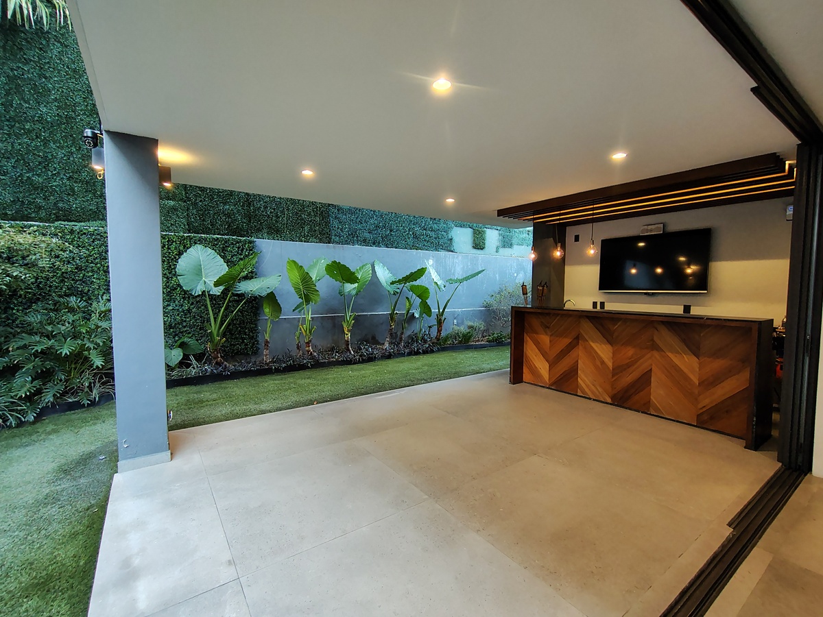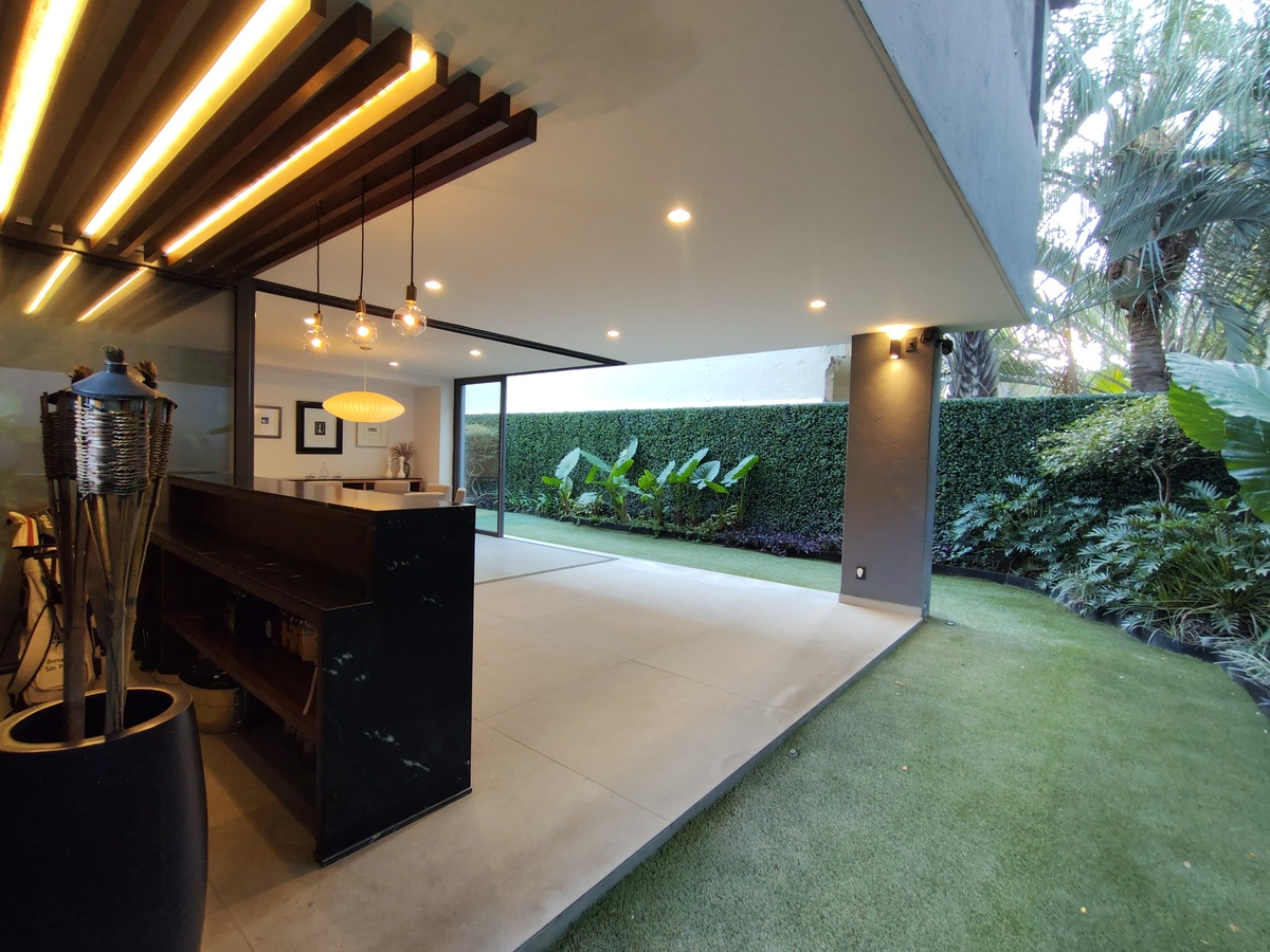 Exclusiva residencia de lujo que combina diseño contemporáneo, confort y elegancia en cada rincón. Con 445 m² de terreno y 394 m² de construcción, esta propiedad ofrece 3 recámaras con amplios walk-in closets y pisos de madera de ingeniería, family room, oficina privada, 4 baños completos y 2 medios baños. Disfruta de su espectacular rooftop con fire pit, putting green, terraza con barra social y un jardín con paisajismo e iluminación de diseño. La cocina está totalmente equipada con electrodomésticos de alta gama, mientras que la cochera para 4 autos y el cuarto de servicio con acceso independiente aportan funcionalidad y comodidad. Ubicada en un fraccionamiento con altos estándares de seguridad, esta residencia ofrece una experiencia de vida incomparable.