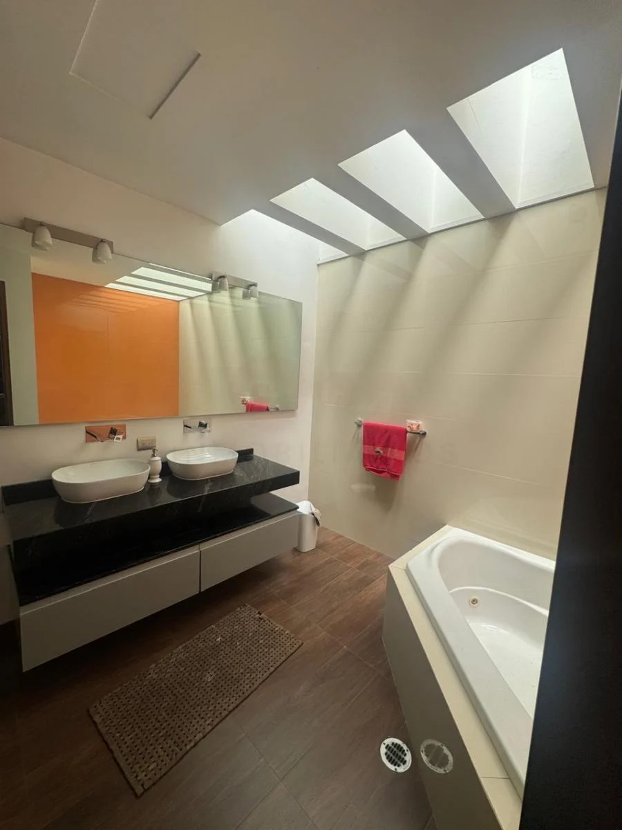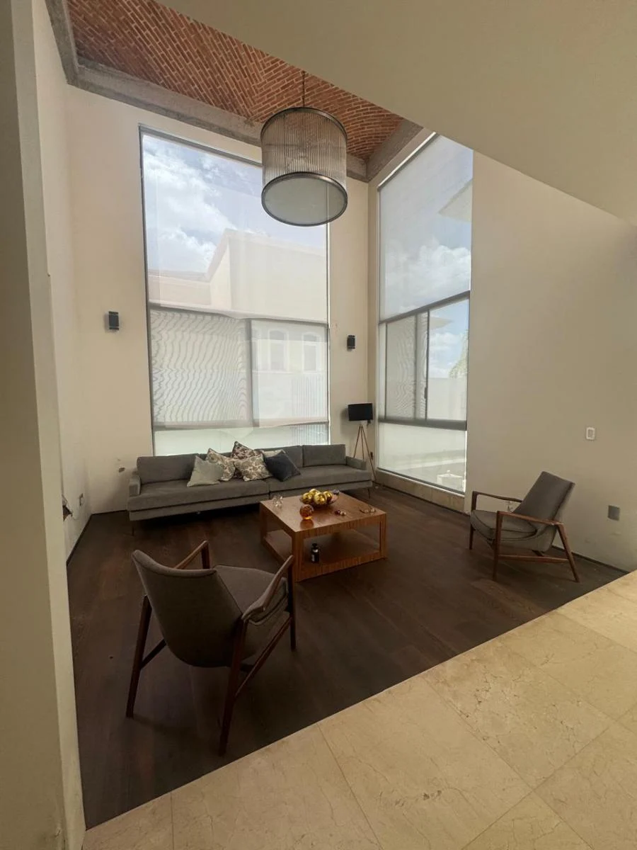 Descubre esta espectacular residencia de 550 m² de construcción sobre un terreno de 420 m², donde el diseño y la funcionalidad se combinan a la perfección. En el nivel sótano encontrarás 6 cocheras semi-techadas, cuarto de servicio con baño, área de lavado, patio y bodega. En el primer piso, un elegante recibidor da paso a un estudio, sala con doble altura y ventanales de piso a techo, comedor conectado a la terraza y jardín, y una cocina integral de lujo con isla central y acabados en mármol y granito. En el segundo piso, la recámara principal ofrece vestidor y baño con jacuzzi, mientras que las recámaras secundarias cuentan con clóset vestidor, baño privado y balcón; además, una sala de estar familiar brinda un espacio acogedor para compartir.