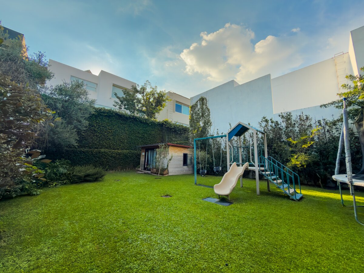 Exclusiva residencia en venta en Puerta del Bosque, una de las zonas con mayor plusvalía de la ciudad, sobre Av. Universidad. Con 722 m² de terreno y 515 m² de construcción, esta propiedad ofrece elegancia, amplitud y privacidad, rodeada de un hermoso jardín. Distribuida en tres niveles: medio sótano con cochera, área de lavado y cuarto de servicio con baño completo; primer nivel con recibidor, cocina integral con cubierta de granito, sala de TV, sala-comedor con cantina, medio baño, terraza y acceso al jardín; y segundo nivel con tres recámaras (todas con baño, vestidor y pisos de madera) y un estar de TV. Equipada con circuito cerrado y paneles solares, la residencia combina lujo y funcionalidad. Dentro de un fraccionamiento con seguridad 24/7, amplias áreas verdes, parque frente a la casa y casa club con alberca, gimnasio, canchas de tenis y salón de usos múltiples.