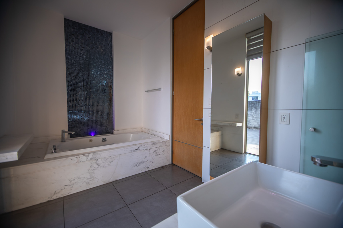 Residencia de lujo en el exclusivo condominio Puerta Plata, zona Andares, con diseño moderno, espacios amplios y excelente iluminación natural. En planta baja cuenta con recibidor a doble altura, cocina con barra de granito, despensa, cuarto de servicio con baño completo, sala, comedor, terraza techada con cortinas y ventilador, jardín con muro llorón y una amplia recámara con vestidor y baño. En planta alta dispone de recámara principal con terraza, vestidor y baño con tina de mármol, dos recámaras secundarias con baño y vestidor, sala de TV, clóset de blancos y patio. El condominio ofrece exclusivas amenidades como casa club, alberca, canchas de tenis y pádel, gimnasio, juegos infantiles, restaurante, cine y salón de eventos, ideal para disfrutar un estilo de vida único y sofisticado.