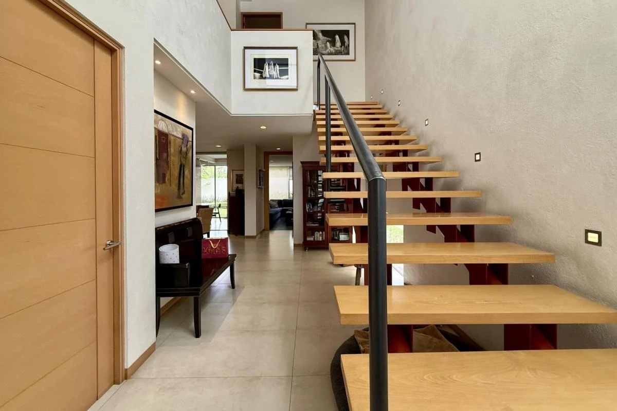 Residencia en Venta en Valle Real – Coto Siena Ubicada en uno de los cotos más exclusivos y privados de Valle Real, con solo 22 lotes y cercana al Club Valle Real, esta casa de 2 niveles estilo contemporáneo ofrece 464.77 m² de terreno y 425 m² de construcción, en excelente estado de conservación y con acabados de lujo. Perfecta para familias de 5 a 7 integrantes, cuenta con 4 recámaras, 4.5 baños, amplia sala-comedor, cocina integral equipada con isla y torre de hornos, estudio, terraza social techada, jardín posterior y lateral, cuarto de servicio, área de lavado, bodega y cochera para 4 autos. Equipada con paneles solares Bright, ventiladores de techo, cortinas enrollables y aire acondicionado tipo mini split en recámaras y estudio, esta propiedad combina funcionalidad, elegancia y una ubicación privilegiada en la Zona Real, con acceso a las principales avenidas y a colegios de prestigio como el TEC de Monterrey, Instituto de Ciencias y Colegio Cumbres San Javier.