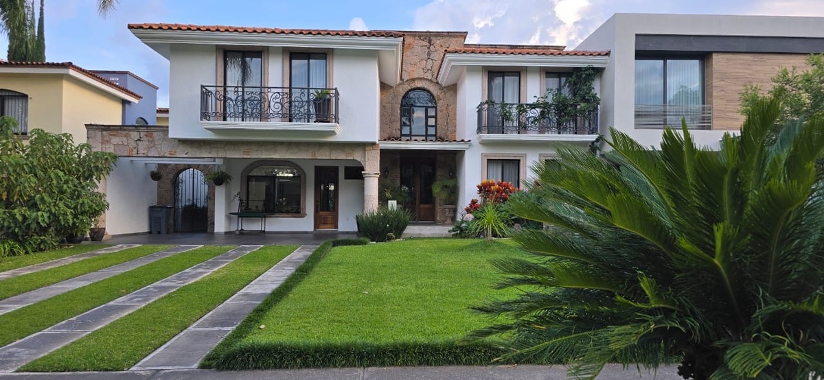 Amplia casa en Venta en Valle Real, Zapopan. Fraccionamiento con club privado con alberca, cancha de tenis, futbol, gym, etc. Planta baja: Cochera para 6 autos, Sala de tv con cuarto de almacenamiento, 1/2 baño de visitas, Cocina de mdf de alta resistencia y encimeras de cuarzo electrodomesticos empotrados, Ante comedor, Sala doble altura con cúpula, Comedor con mueble de parota, Cuarto de servicio con baño completo, Cuarto de lavado, Patio trasero con almacenamiento, muro llorón, banca. Planta alta: 1 habitación principal con piso laminado, doble walking closet,baño completo y jacuzzi. 1 habitación secundaria con terraza, walking closet y baño completo. 2 habitaciones secundarias con walking closet cada una y baño completo compartido y piso laminado y aire acondicionado.