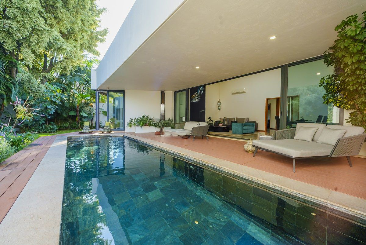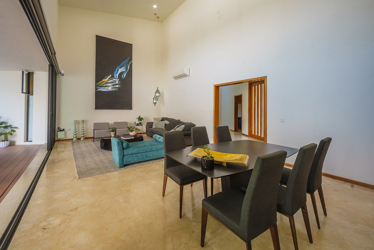 Ubicada en el exclusivo fraccionamiento Valle Real en Zapopan, esta imponente residencia se asienta sobre un terreno de 661 m² con una singular forma de abanico que brinda una amplitud excepcional, y cuenta con 478 m² de construcción distribuidos en tres niveles que equilibran lujo, funcionalidad y privacidad; ofrece sótano con cochera techada para 6 autos y amplia bodega, planta baja con sala, comedor y cocina integral de diseño integrados, dos recámaras con baño completo cada una, estudio independiente, medio baño de visitas y un espectacular jardín posterior con alberca climatizada, mientras que en la planta alta se ubican las áreas de servicio y la preparación estructural para añadir una tercera y cuarta recámara, convirtiéndola en una propiedad ideal para familias que buscan espacio, seguridad, alta plusvalía y una ubicación inmejorable.