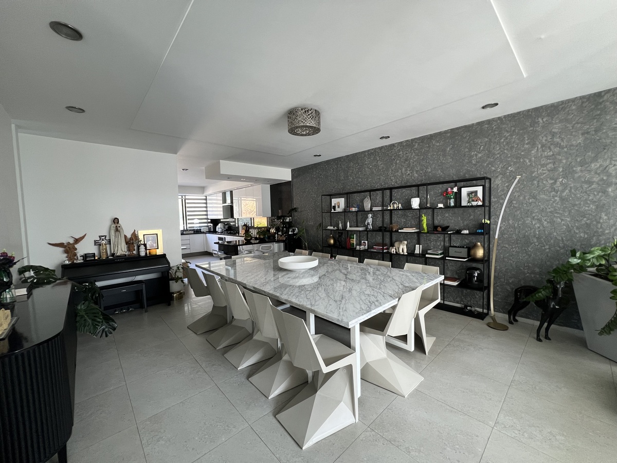 Residencia de lujo con diseño excepcional y amplios espacios, pensada para ofrecer el máximo confort y bienestar. Ubicada en una zona exclusiva, esta espectacular casa combina elegancia, funcionalidad y amenidades de primer nivel. En planta baja cuenta con recibidor, amplia sala, comedor, terraza, jardín, estudio con baño completo y cocina integral equipada; en planta alta, una sala de TV y tres recámaras, cada una con baño, tina y vestidor, dos de ellas con balcón; y en sótano, área de lavado con medio baño, dos bodegas y cochera para cuatro autos, dos techados. Disfruta de un estilo de vida inigualable con alberca, spa, gimnasio, cancha de tenis, salón de fiestas, área de juegos infantiles y amplias áreas verdes. La propiedad ofrece además seguridad 24 horas, circuito cerrado, estacionamiento para visitantes y una vista panorámica impresionante. Más que una casa, es un santuario diseñado para vivir con lujo, comodidad y exclusividad.