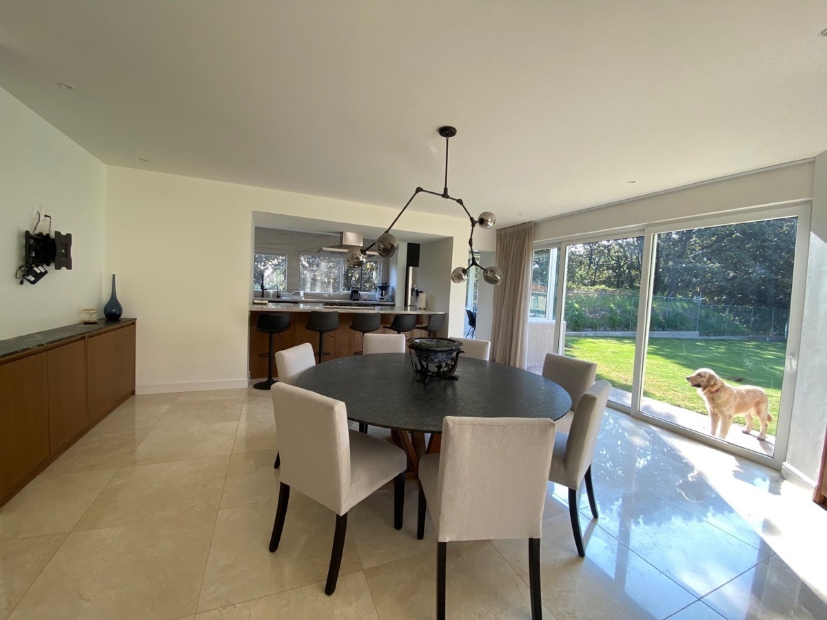 Majestuosa residencia moderna de tres niveles en una exclusiva zona residencial al sur de la ciudad, disfrutando de una privilegiada vista al Bosque La Primavera. Al ingresar, se descubre una cochera para 7 autos (4 techados y 3 descubiertos), recibidor, medio baño y bodega/cava. La planta baja despliega un amplio distribuidor que conecta la sala de TV, sala familiar, comedor, cuarto de juegos, cocina con desayunador, despensa, cuarto de servicio y lavandería. La planta alta alberga tres recámaras con baño y closet, destacando la suite principal con walking closet. El exuberante jardín presenta una alberca con chapoteadero, área de fogatero, espacio infantil, baño completo y acceso lateral independiente, perfecto para el entretenimiento y el descanso en un entorno natural, con todos los servicios urbanos a solo minutos de distancia.