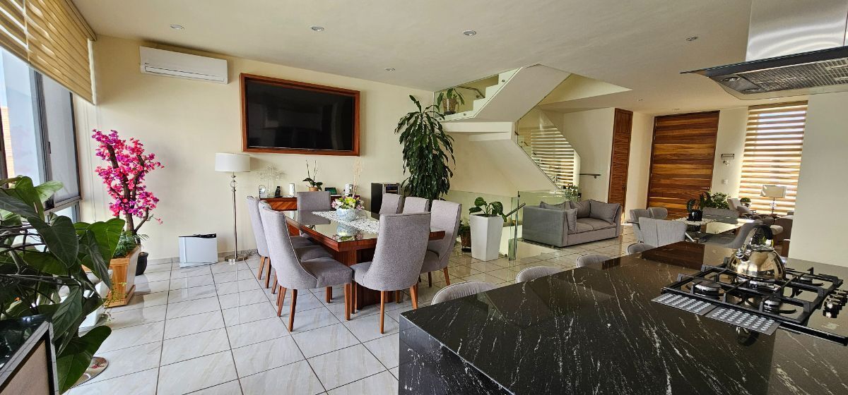 Casa ubicada en uno de los primeros cotos de Valle Imperial, justo junto al área verde, ofreciendo privacidad y un entorno natural privilegiado. La propiedad cuenta con 3 recámaras, destacando una recámara principal muy amplia y luminosa con walk-in closet y baño completo, además de dos recámaras secundarias, cada una con su propio baño. Incluye un amplio estudio u oficina con baño completo, medio sótano con espacio techado para 3 autos, jacuzzi, sundeck y sauna para disfrutar momentos de relajación. La cocina, moderna y muy luminosa, está equipada y diseñada con una amplia barra de mármol y alacena. También dispone de sala de TV y un espectacular roof garden con ventanearía de aluminio, persianas eléctricas, pergolado, medio baño, gimnasio y una vista impresionante. Una residencia ideal para quienes buscan confort, funcionalidad y exclusividad en Valle Imperial.