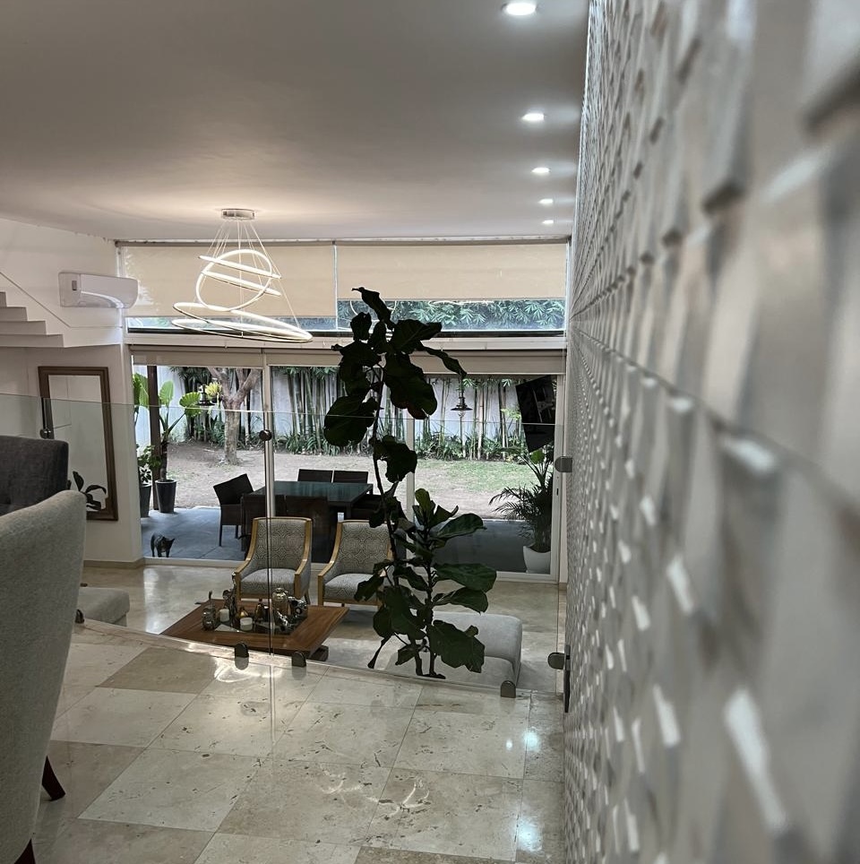 Hermosa residencia remodelada en Valle Real, moderna, iluminada y con espacios diseñados para el confort. Cuenta con 520 m² de construcción y 514 m² de terreno. En planta baja ofrece un acogedor recibidor, sala de doble altura con vista al jardín, elegante cantina con barra de granito integrada al área social, amplio comedor para más de 12 personas y terraza techada conectada a las áreas verdes. La cocina integral goza de excelente iluminación, barra desayunadora, antecomedor y vistas al jardín, además de un baño de visitas. En planta alta se encuentran tres amplias habitaciones con baño completo; la principal con terraza jardinada, además de un generoso estar de TV. El sótano incluye un gran espacio multiusos ideal para cuarta recámara, estudio, sala de juegos o gimnasio, así como cuarto de servicio con baño. La cochera acomoda hasta 6 autos. Equipada con minisplits en habitaciones y áreas sociales, además de paneles solares para eficiencia energética.