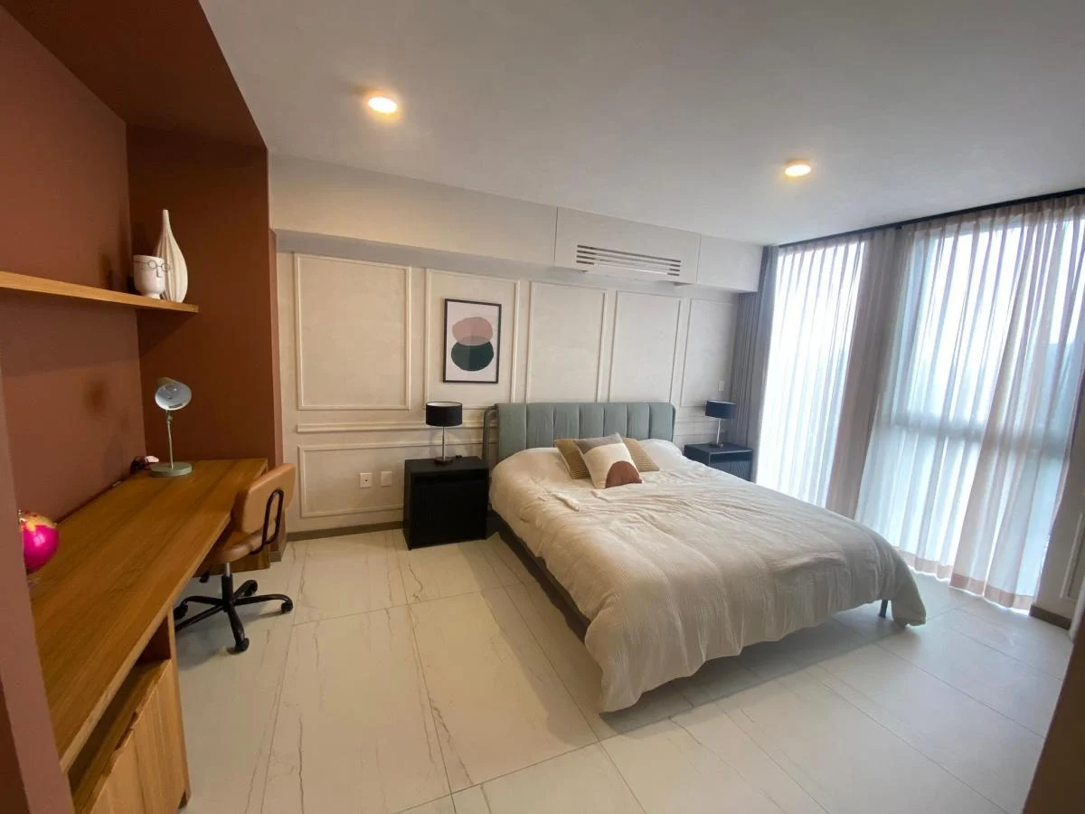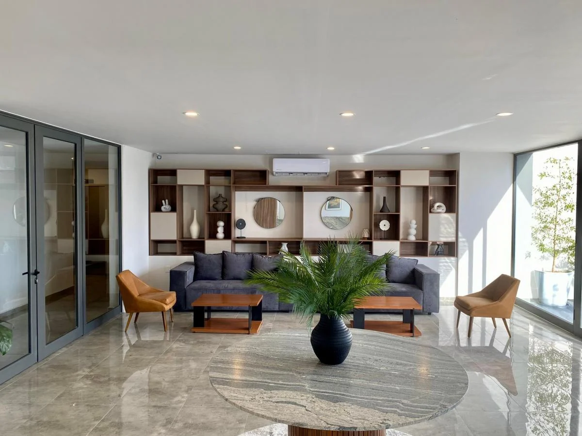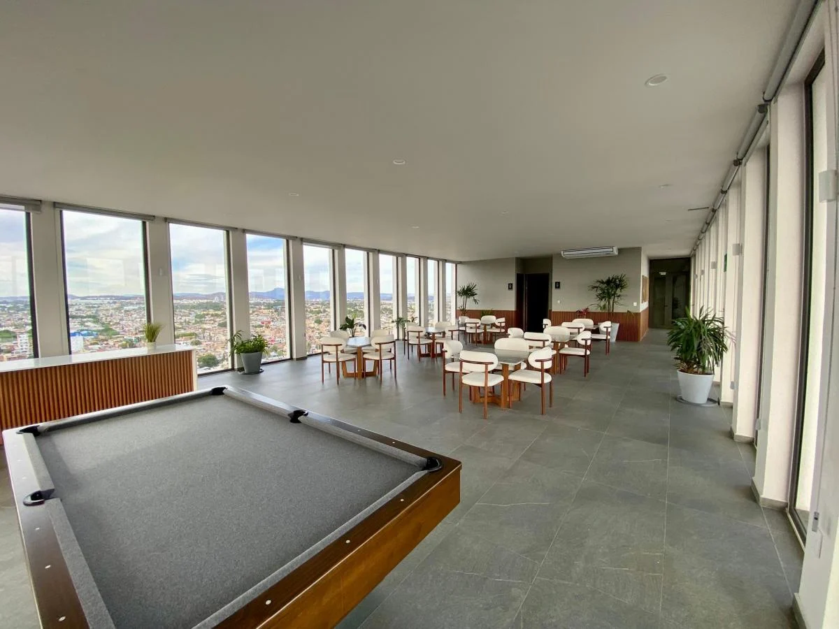 En venta departamento amueblado, equipado y decorado en la exclusiva torre The Lighthouse, Zona Real, ubicado en el piso 13 con 61 m² y 2 cajones de estacionamiento. Cuenta con sala con sofá cama, mesa de centro, mueble con TV, comedor para 4 personas, cocina con cubierta de granito, parrilla, microondas, refrigerador y área de lavado; además de recámara con cabecera, base, colchón, burós, lámparas, mueble de trabajo, entrepaños y baño completo. El desarrollo ofrece amenidades de primer nivel: lobby y lavandería, alberca climatizada, terraza techada, fire pit, áreas pet friendly, sky room, gimnasio, social room y roof top panorámico, con seguridad 24/7 y control de acceso. Incluye muebles y aire acondicionado en recámara y sala-comedor.