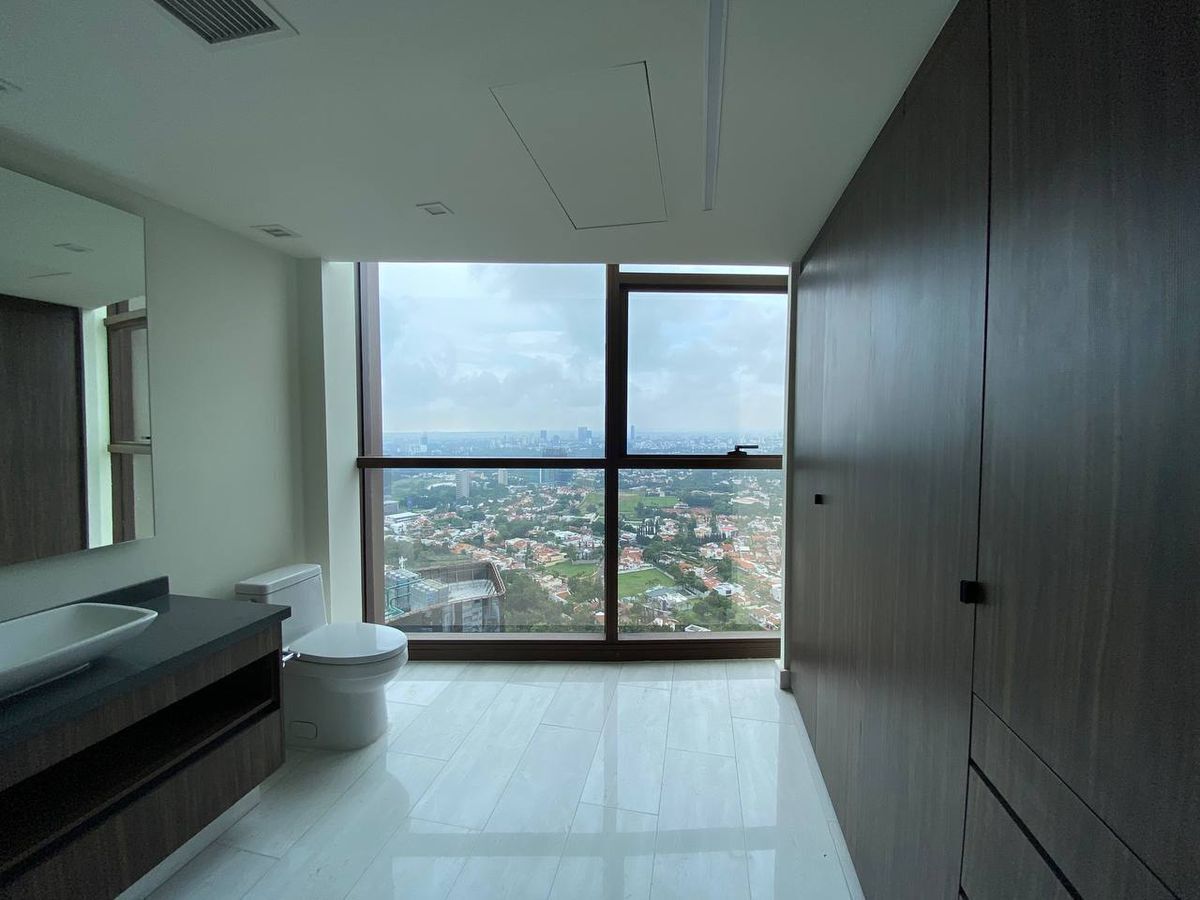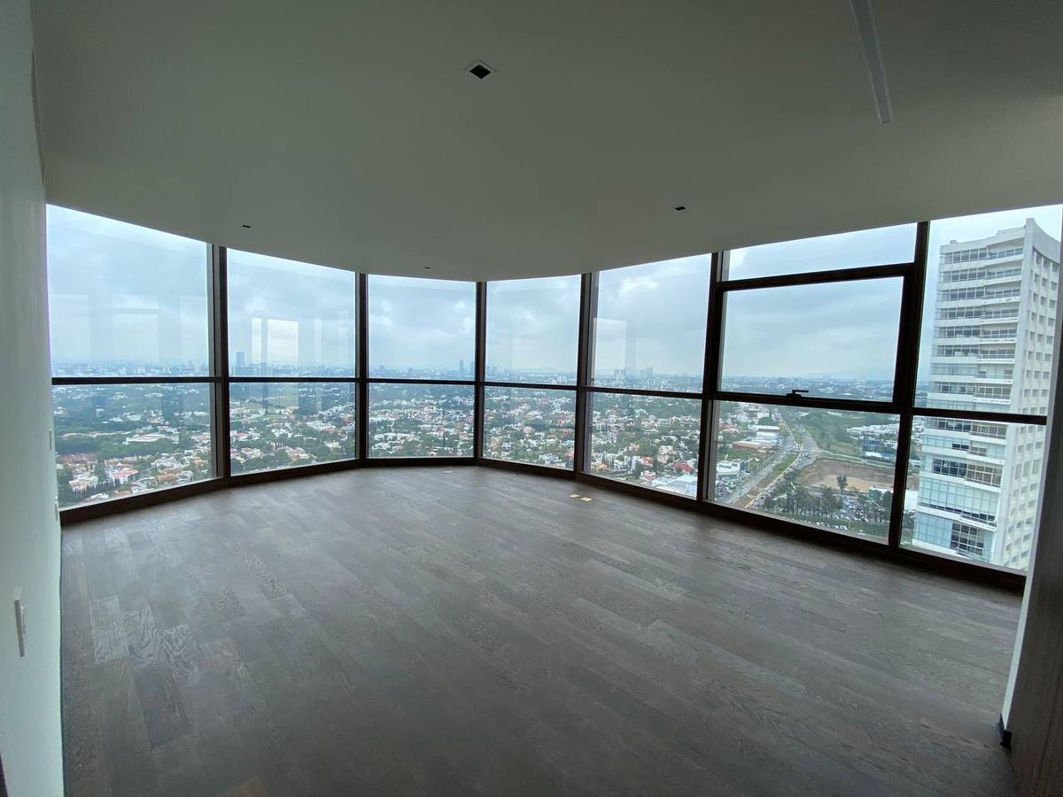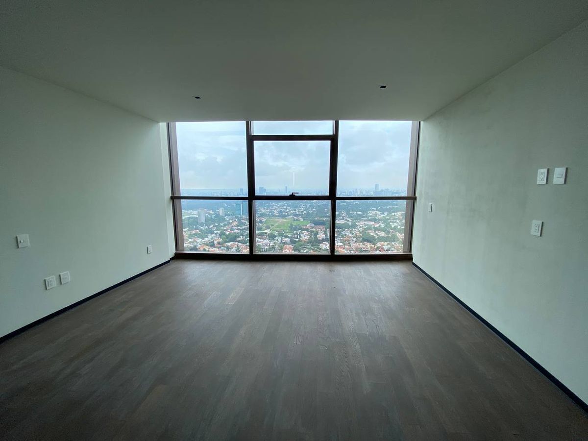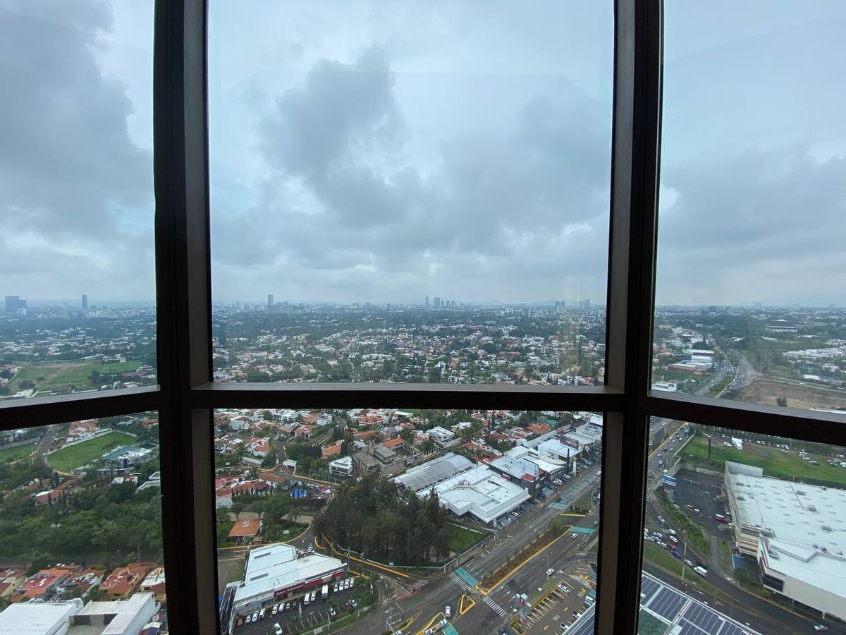 Lujoso departamento de 172 m² ubicado en piso 31 dentro de una de las torres más exclusivas de Zapopan, diseñado por la reconocida firma Sordo Madaleno, que ofrece 2 recámaras con vistas panorámicas, 3.5 baños, sala, cocina, cuarto de servicio, 2 cajones de estacionamiento, además de 4 elevadores y 1 adicional de carga, control de acceso biométrico y una espectacular vista a la ciudad, rodeado de exclusivas tiendas, restaurantes y entretenimiento.