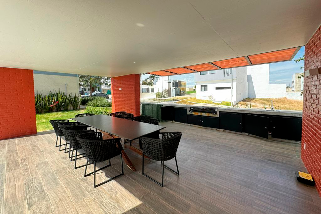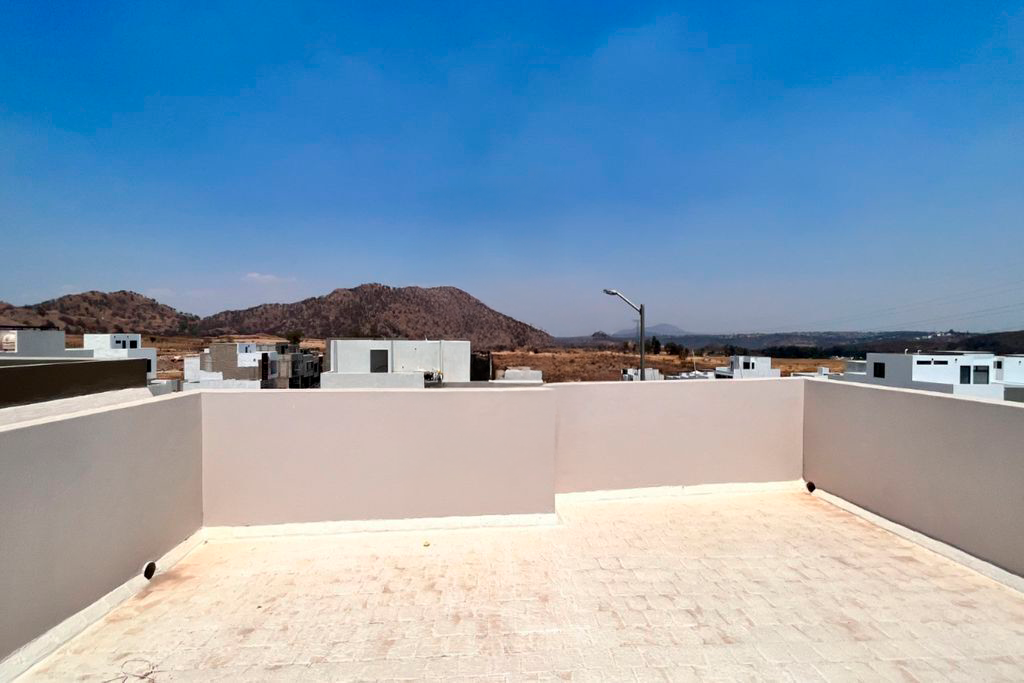 Estrena casa en el exclusivo coto privado “Pontevedra” dentro de Capital Norte, a minutos del Instituto Tepeyac de Zapopan Norte, con excelentes acabados como carpintería en parota, iluminación LED, cocina integral con granito y pisos de porcelanato 60×60. La planta baja ofrece cochera semitechada para dos autos, medio baño, sala, comedor, cocina y jardín; en el segundo nivel encontrarás tres recámaras con baño completo —la principal con vestidor y todas con preparación para aire acondicionado—, y en el tercer nivel área de lavado, medio baño y terraza con vista. El coto ofrece amenidades como acceso controlado, casa club con alberca, terraza de usos múltiples, asador, áreas verdes y estacionamiento para visitas. Ubicada contra esquina del Hospital Santa María Chapalita Norte
