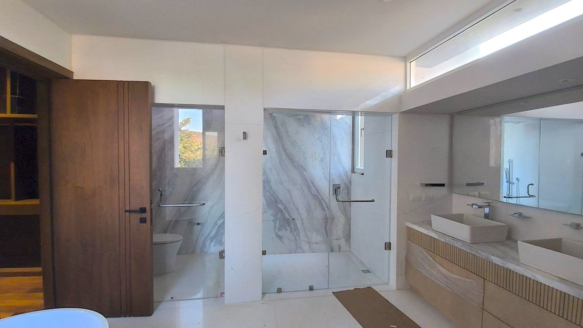 Impresionante residencia totalmente nueva con acabados de lujo y amplios espacios, construida sobre 650 m² de terreno y 680 m² de construcción, que ofrece 4 recámaras y 5.5 baños con un diseño arquitectónico moderno y elegante; en el sótano cuenta con cochera para 10 autos y cuarto de juegos; en planta baja destaca un recibidor a doble altura, sala con estación de fregador, bar, cava, refrigerador de vinos y frigobar, chimenea eléctrica con tope de mármol negro, estudio o 5ª recámara con baño completo, cocina equipada con línea blanca de alta gama (torre de hornos, lavavajillas, isla con encimera de cuarzo gris, alacena y acabados alto brillo), jardín de autor con más de 600 plantas, patio de servicio y cuarto de servicio con baño; en el primer nivel ofrece sala de estar, recámara principal con sauna, tina, doble lavabo, vestidor muy amplio y terraza, además de 3 recámaras secundarias cada una con vestidor y baño completo; sobresale por pisos de mármol y carpintería en madera de nogal.