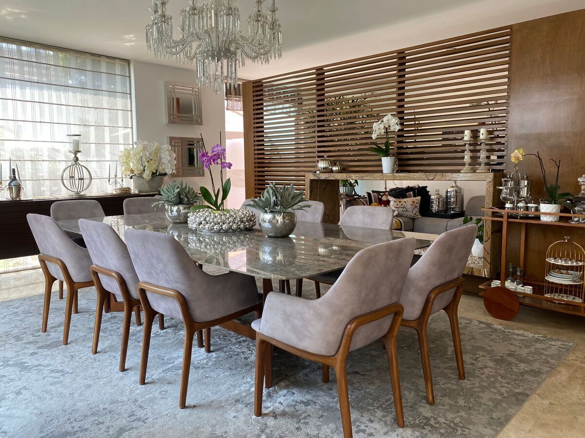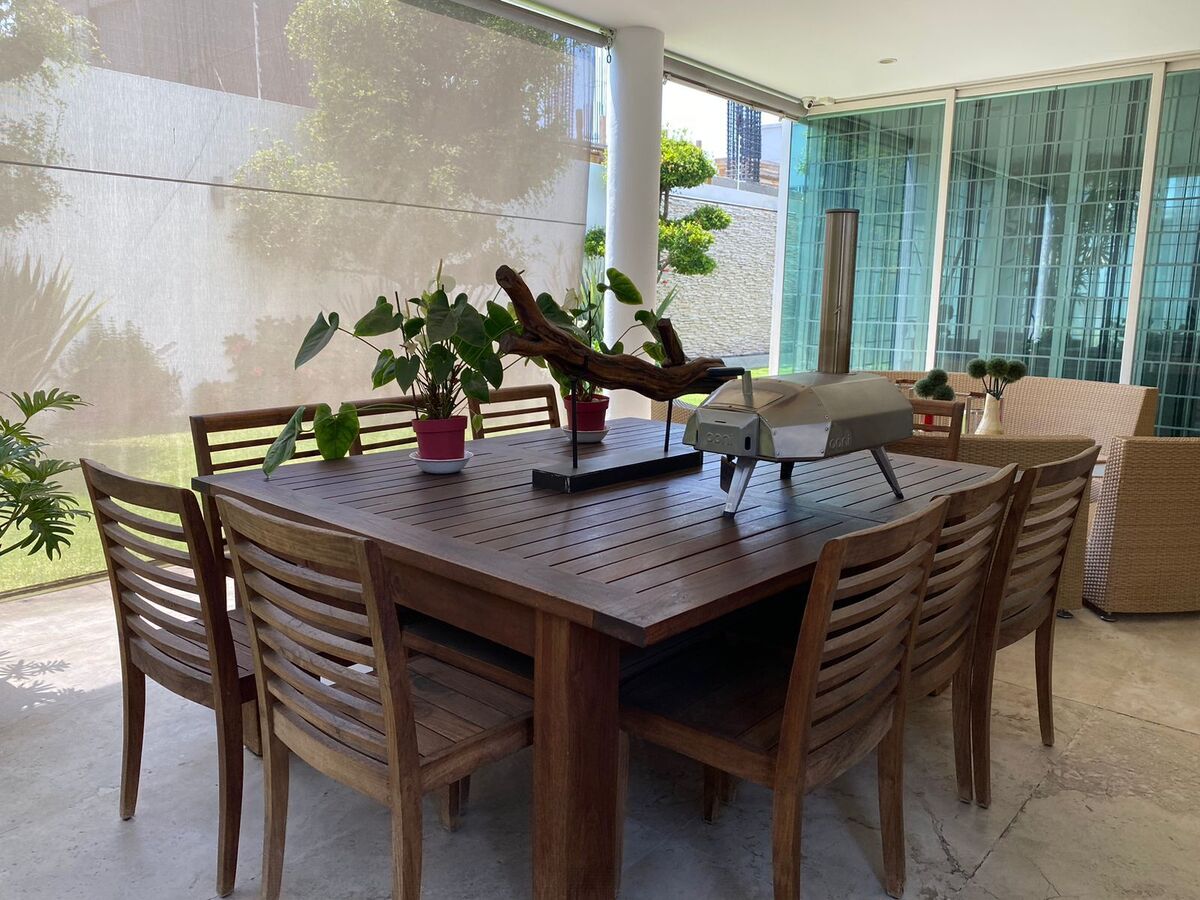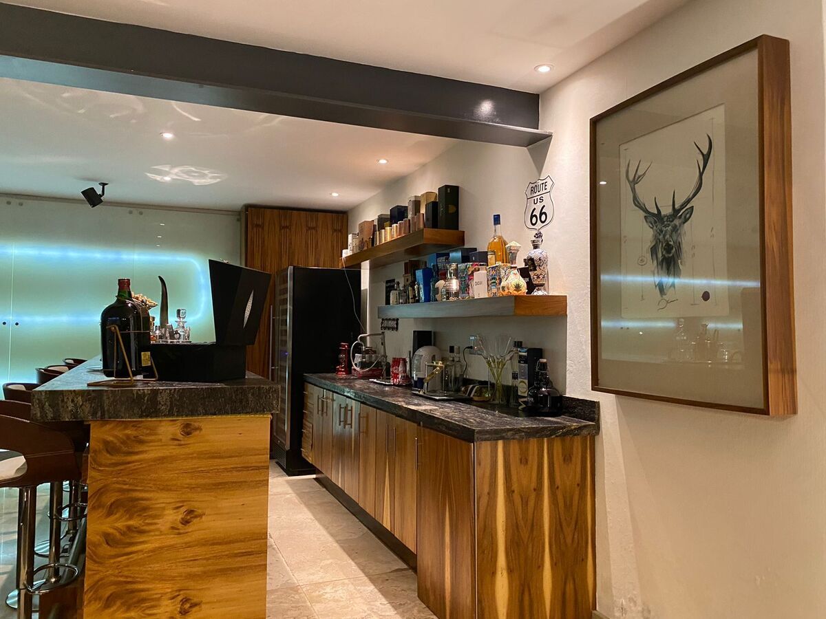 Residencia de lujo en una de las zonas de mayor plusvalía, con diseño arquitectónico de alta gama, techos altos, iluminación natural estratégica y una distribución única que incluye todos los muebles y equipamiento premium; en sótano cuenta con sala de cine totalmente equipada con butacas y sonido profesional, salón de juegos con mesa de billar y zona de cartas, cuarto de lavado y cuarto de servicio con electrodomésticos, en planta baja ofrece sala principal de doble altura con mobiliario de diseño, comedor para más de 12 personas con mesa, sillas y vajillero, cocina integral con isla y electrodomésticos de alta gama, dos medios baños de lujo, así como terraza exterior con sala de descanso, asador profesional y amplio jardín decorado, mientras que en planta alta se disfruta de una recámara principal con dos baños completos, vestidor walk-in, jacuzzi privado y sala de estar