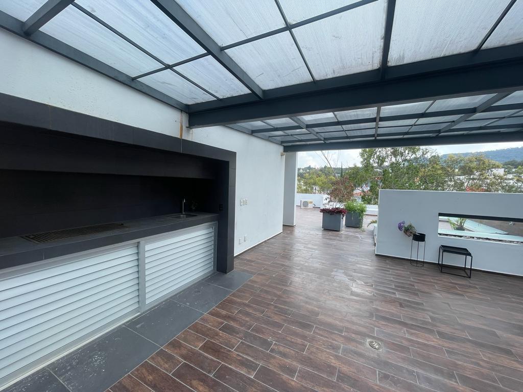 Imponente residencia en venta en Bugambilias 2da Sección, con 670 m² de construcción sobre 360 m² de terreno, que combina diseño de lujo, funcionalidad y tecnología sustentable. La propiedad cuenta con 4 recámaras (la principal con vestidor, tocador, baño con jacuzzi y cuarto de vapor), 4.5 baños, estar de TV, chimenea, balcón interior con cascada de 9 m de altura y sky bar en la terraza superior con asador y mirador. En planta baja ofrece un espectacular pórtico de ingreso con fuente y cascada, recibidor, estudio con librero integrado, comedor con servicio de office, sala a doble altura con bar y chimenea con vista a la cañada, cocina integral profesional equipada con electrodomésticos de alta gama, cava de vinos, salón de juegos y terraza panorámica con alberca, jacuzzi, horno para pizzas y asador, además de cochera para 6 autos con acceso privado.