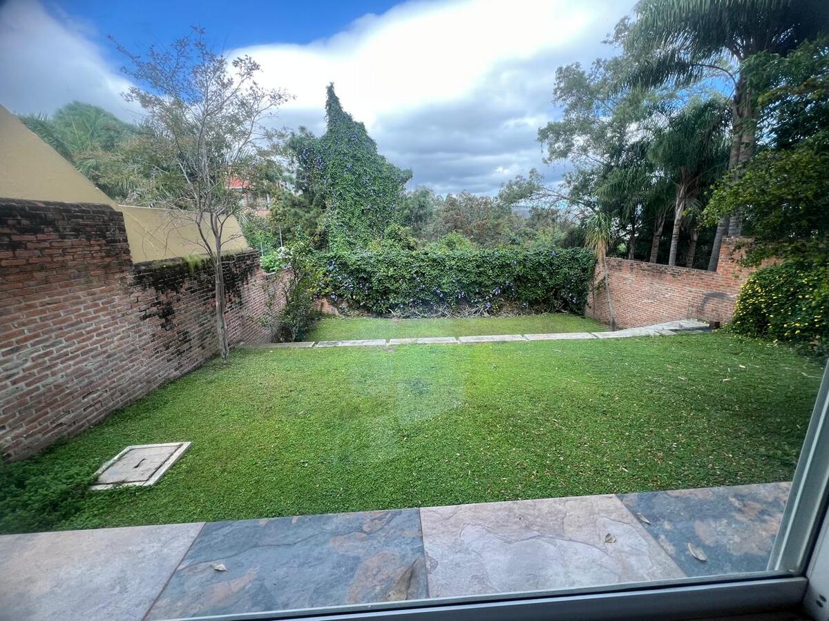 Hermosa residencia en Fraccionamiento Bugambilias, con cochera para 3 autos y sótano que incluye recámara con baño completo y espacio de usos múltiples, además de jardín posterior. En planta baja cuenta con recibidor, sala, comedor, cocina integral y terraza techada con vista al jardín. Planta alta con 3 recámaras, cada una con baño y vestidor, destacando la principal con jacuzzi. La propiedad incluye área de servicio con baño completo y cuarto de lavado.