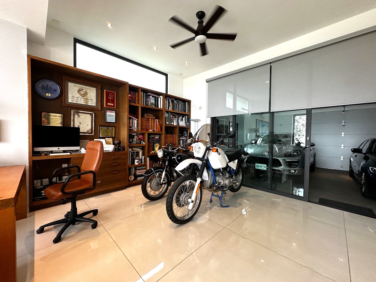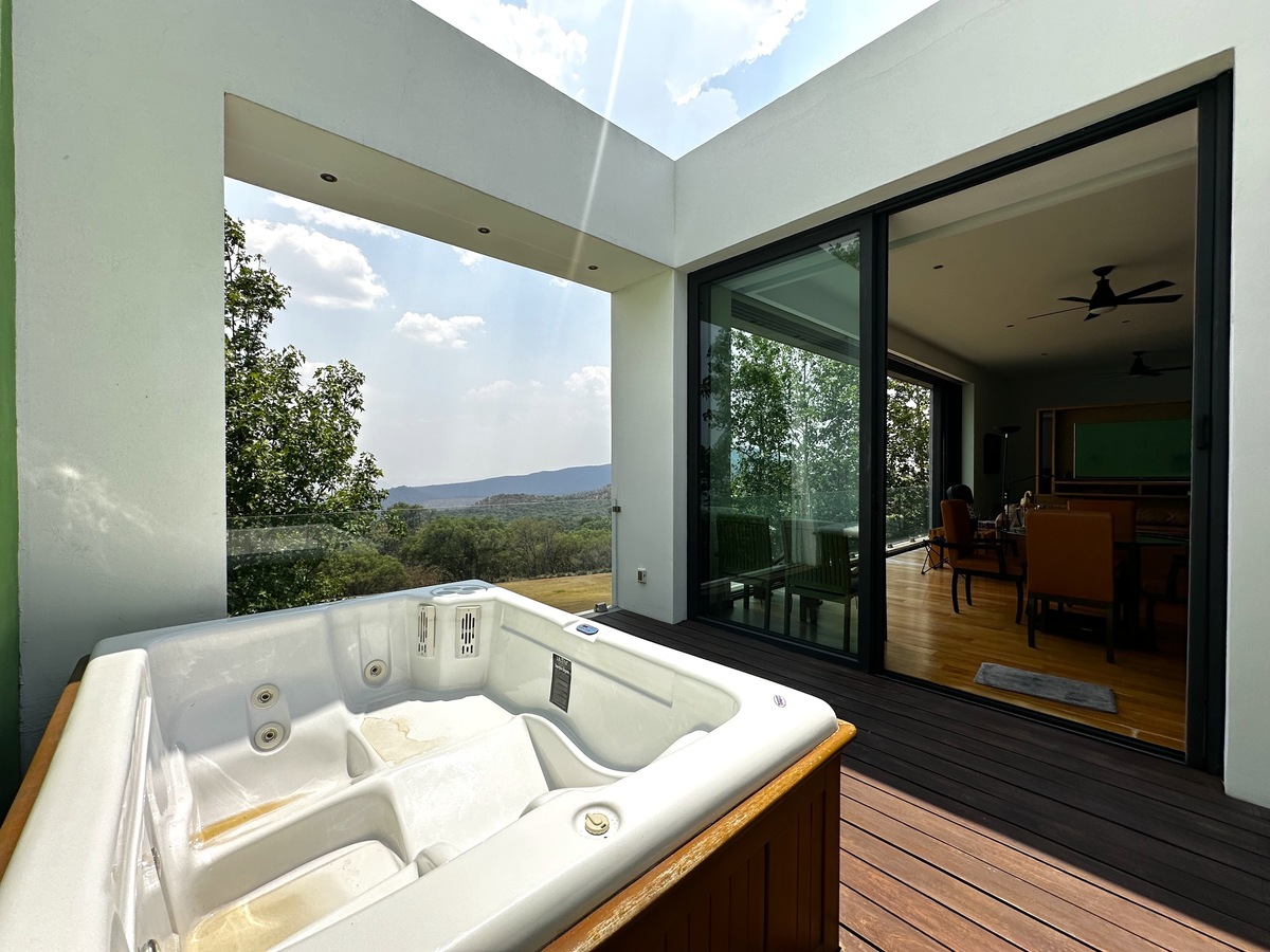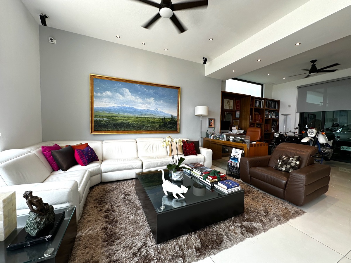 Majestuosa residencia con vista directa al campo de golf en El Cielo Country Club, donde los acabados de lujo y materiales de primera se fusionan en 431 m² de construcción sobre un terreno de 489 m². La planta baja presenta cochera eléctrica para 6 autos, recibidor de doble altura con elevador, medio baño de visitas, sala-comedor con chimenea de gas, cocina integral equipada con isla, barra desayunadora y refrigerador para vinos, estudio o 4ª recámara con baño completo, y jardín con riego programado. La planta alta alberga 3 recámaras con baño y vestidor —la principal con doble regadera, antesala desayunador, terraza con spa, jacuzzi, regadera y asador—, área de lavado, cuarto de servicio con baño y baño para jardinero, complementados con cisterna de 10,000 lts, sistema de filtración de agua, instalación para audio Bosse, cámaras de seguridad y aire acondicionado en toda la propiedad, ofreciendo una experiencia de vida exclusiva en el entorno más prestigioso.