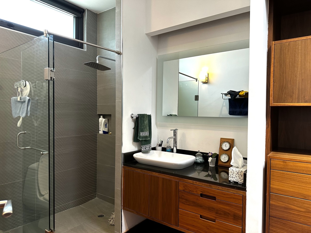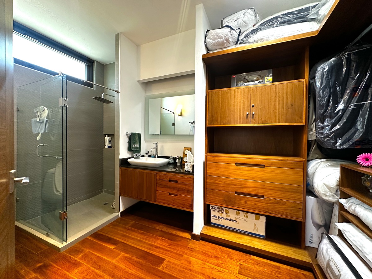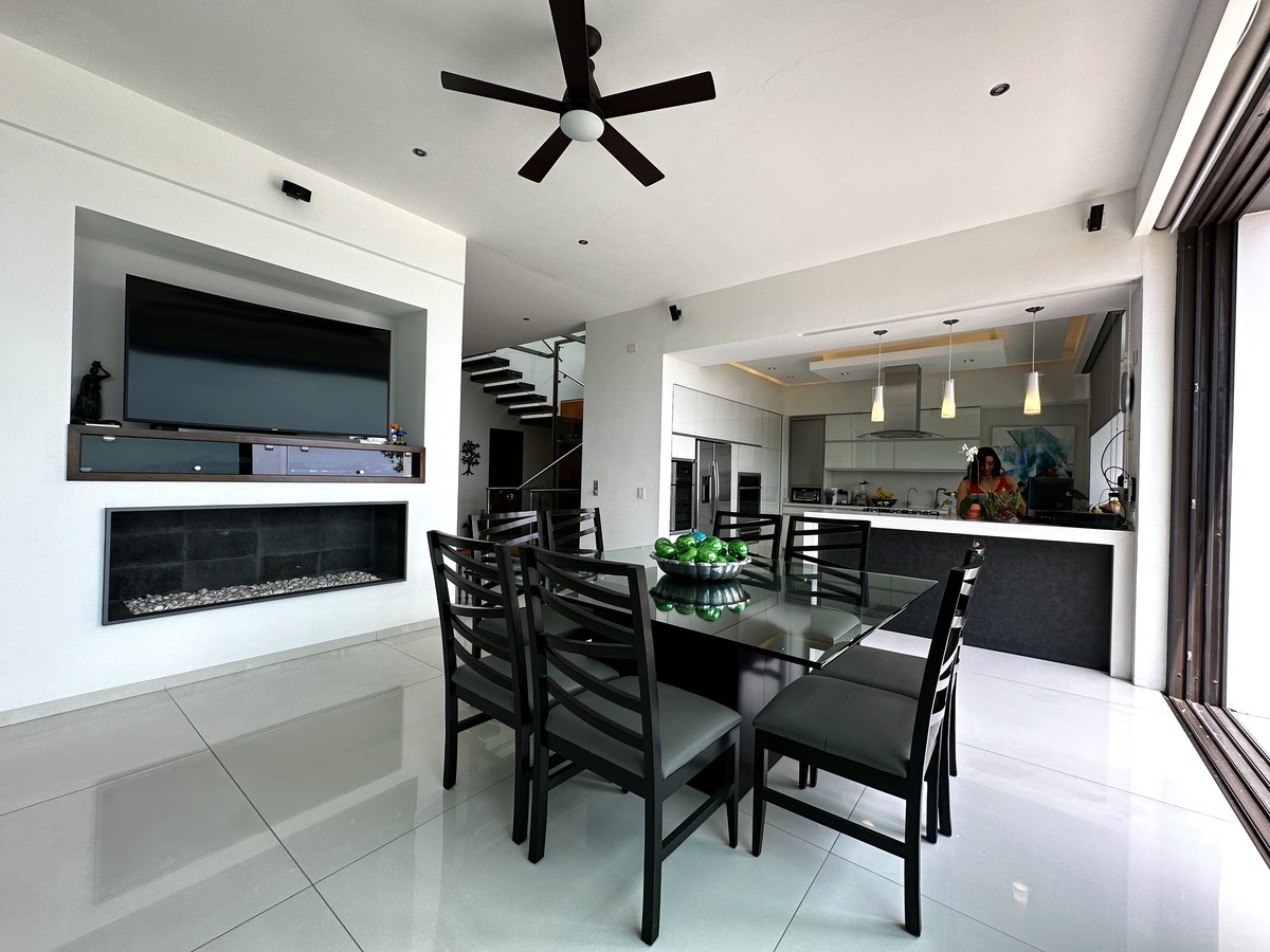Majestuosa residencia con vista directa al campo de golf en El Cielo Country Club, donde los acabados de lujo y materiales de primera se fusionan en 431 m² de construcción sobre un terreno de 489 m². La planta baja presenta cochera eléctrica para 6 autos, recibidor de doble altura con elevador, medio baño de visitas, sala-comedor con chimenea de gas, cocina integral equipada con isla, barra desayunadora y refrigerador para vinos, estudio o 4ª recámara con baño completo, y jardín con riego programado. La planta alta alberga 3 recámaras con baño y vestidor —la principal con doble regadera, antesala desayunador, terraza con spa, jacuzzi, regadera y asador—, área de lavado, cuarto de servicio con baño y baño para jardinero, complementados con cisterna de 10,000 lts, sistema de filtración de agua, instalación para audio Bosse, cámaras de seguridad y aire acondicionado en toda la propiedad, ofreciendo una experiencia de vida exclusiva en el entorno más prestigioso.