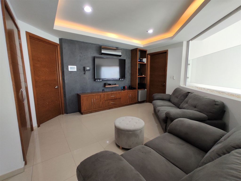 Ubicada dentro del exclusivo Condominio Pirineos, esta joya arquitectónica en esquina ofrece 403 m² de terreno y 383 m² de construcción, rodeada de jardines y acabados premium. Cuenta con 4 recámaras, todas con baño (la principal con vestidor circular y tocador central), sala y comedor con ventanales al jardín, estar de TV con cortinas automatizadas y una espectacular terraza techada con sonido envolvente. La cocina integral moderna está equipada con cubiertas de granito, isla central, hornos empotrados y barra desayunadora. En el sótano se encuentra la cochera para 4 autos, cuarto de servicio con baño, bodega y cuarto de máquinas. Destacan sus detalles de lujo como recibidor a doble altura con muro llorón, carpintería de encino, puerta de parota de 3 m, iluminación inteligente y cisterna de 10,000 lts. Con ubicación privilegiada, áreas verdes y seguridad, esta residencia redefine el confort y la exclusividad. Ideal para quienes buscan un estilo de vida excepcional en Virreyes.