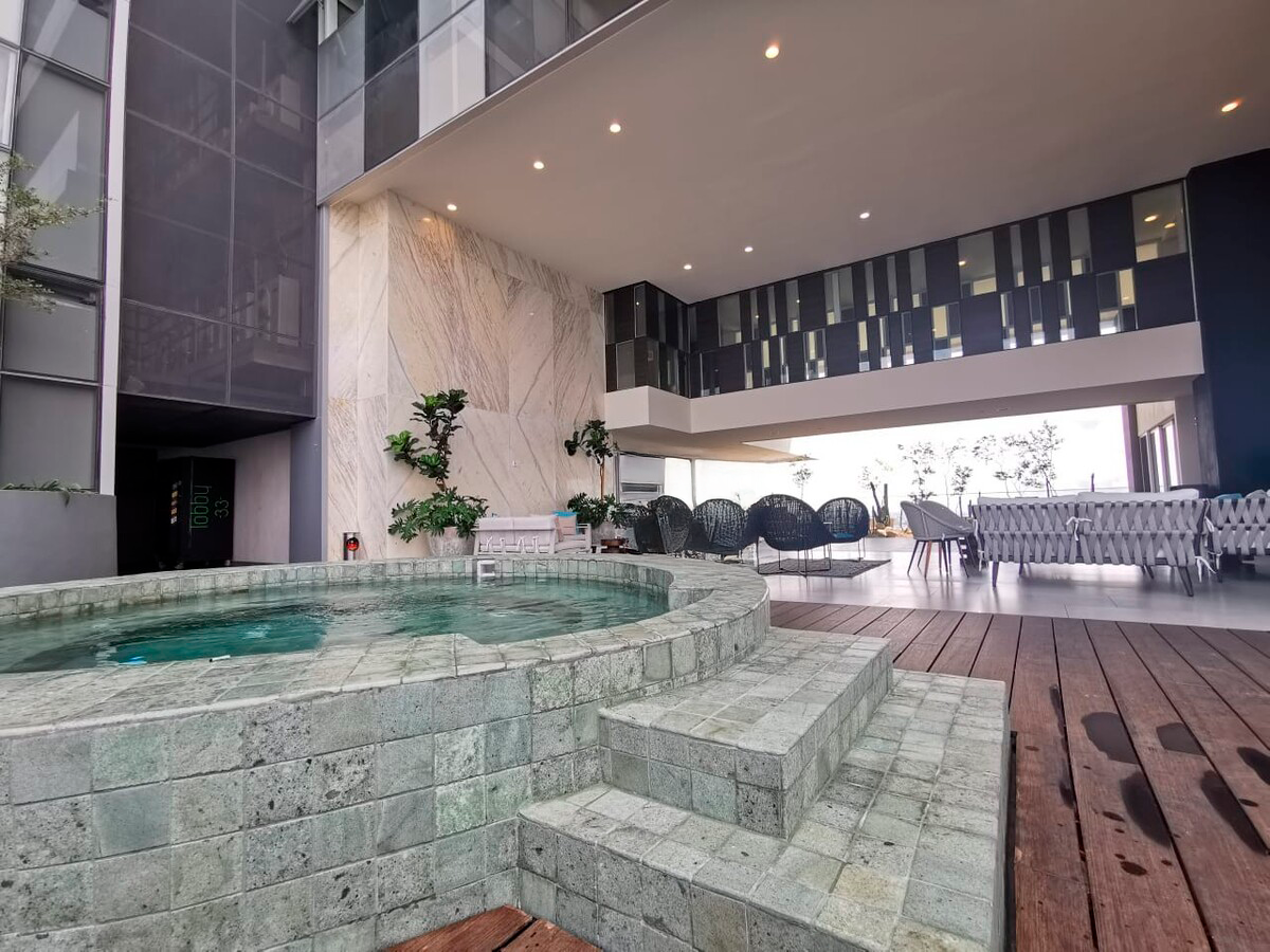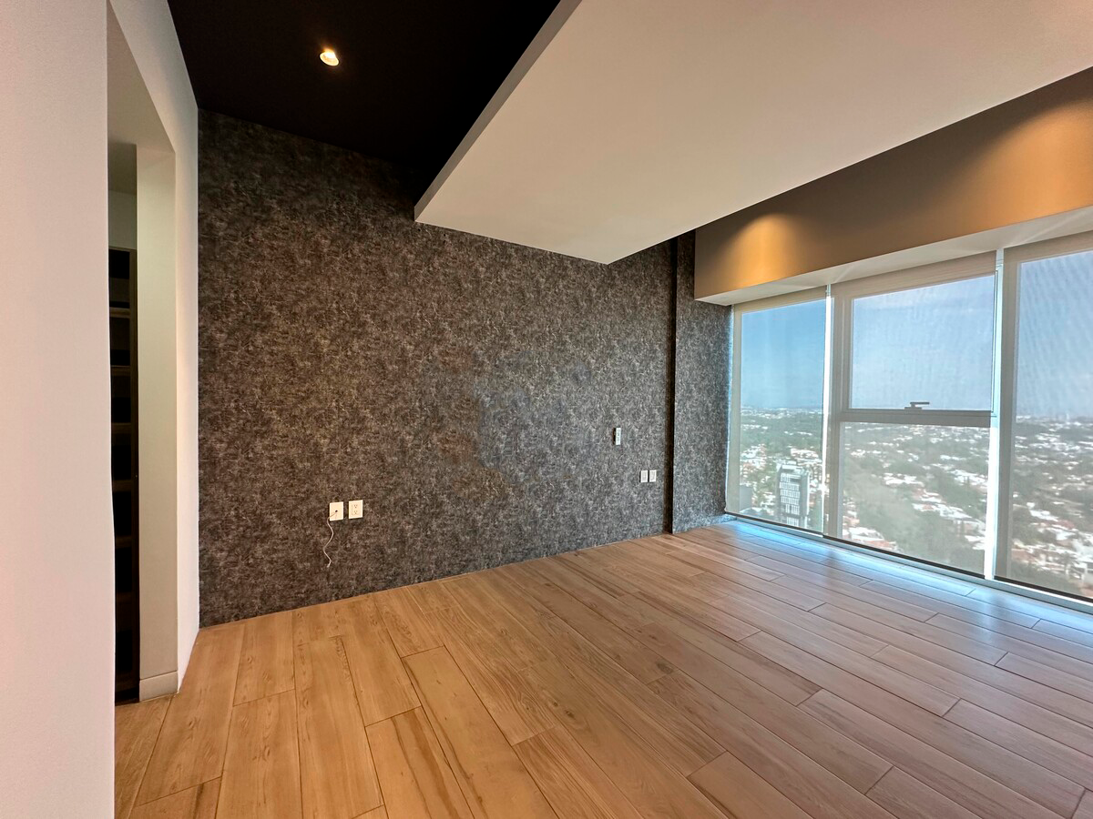 Moderno departamento en venta en Lobby33, ubicado en la zona AAA de Jalisco, Puerta de Hierro, a pasos de Andares. Con más de 90 m² privativos, destaca por su excelente estado de conservación, gran iluminación, ventilación natural y hermosas vistas al Bosque Colomos desde su amplia terraza; además, incluye bodega y dos cajones de estacionamiento. Disfruta amenidades de nivel residencial premium como lobby y recepción, alberca volada con vista panorámica a la ciudad, jacuzzi, salón de eventos, fogateros, gimnasio equipado, área de juegos infantiles, sala de cine, carril de nado en la parte superior del edificio y business center. Propiedad libre de gravamen y con documentación en regla. ¡Agenda tu cita para conocerlo!